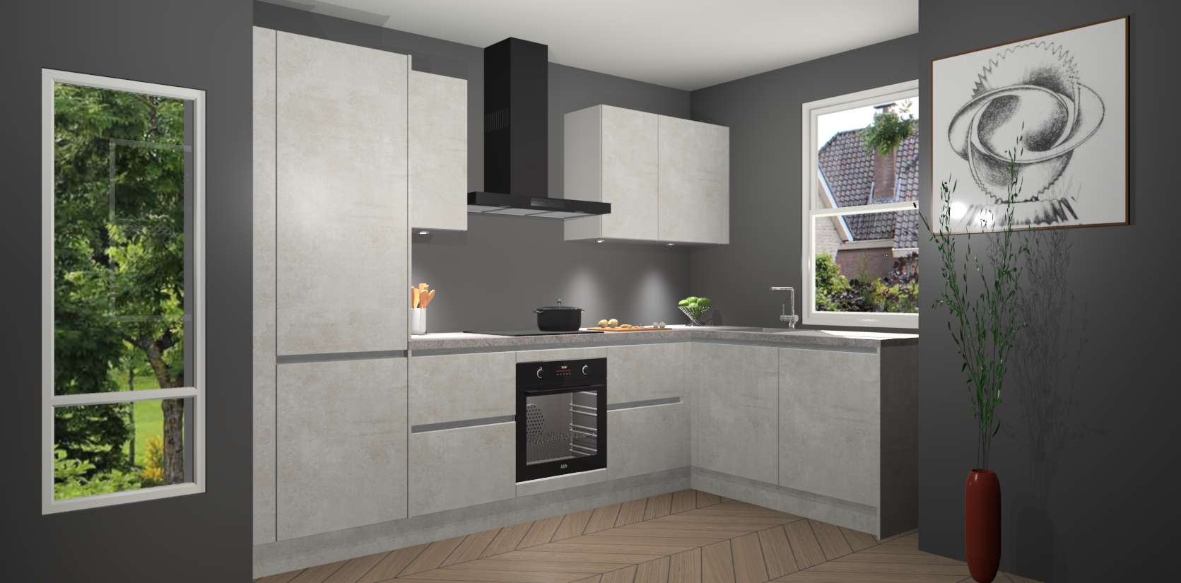 De Beton Opaal greeploze keuken Geneve is precies wat u nodig heeft als u op zoek bent naar modern design, versmolten met tijdloze schoonheid. De strakke afwerking voegt klasse toe terwijl het toch een uitnodigende sfeer behoudt; zeker om zowel gasten als uzelf te inspireren om in stijl te gaan koken! En nog beter, het zal uw budget niet breken - dus waarom wachten? Met de Beton Opaal greeploze keuken Geneve bent u verzekerd van kwaliteit zonder in te leveren op de prijs!