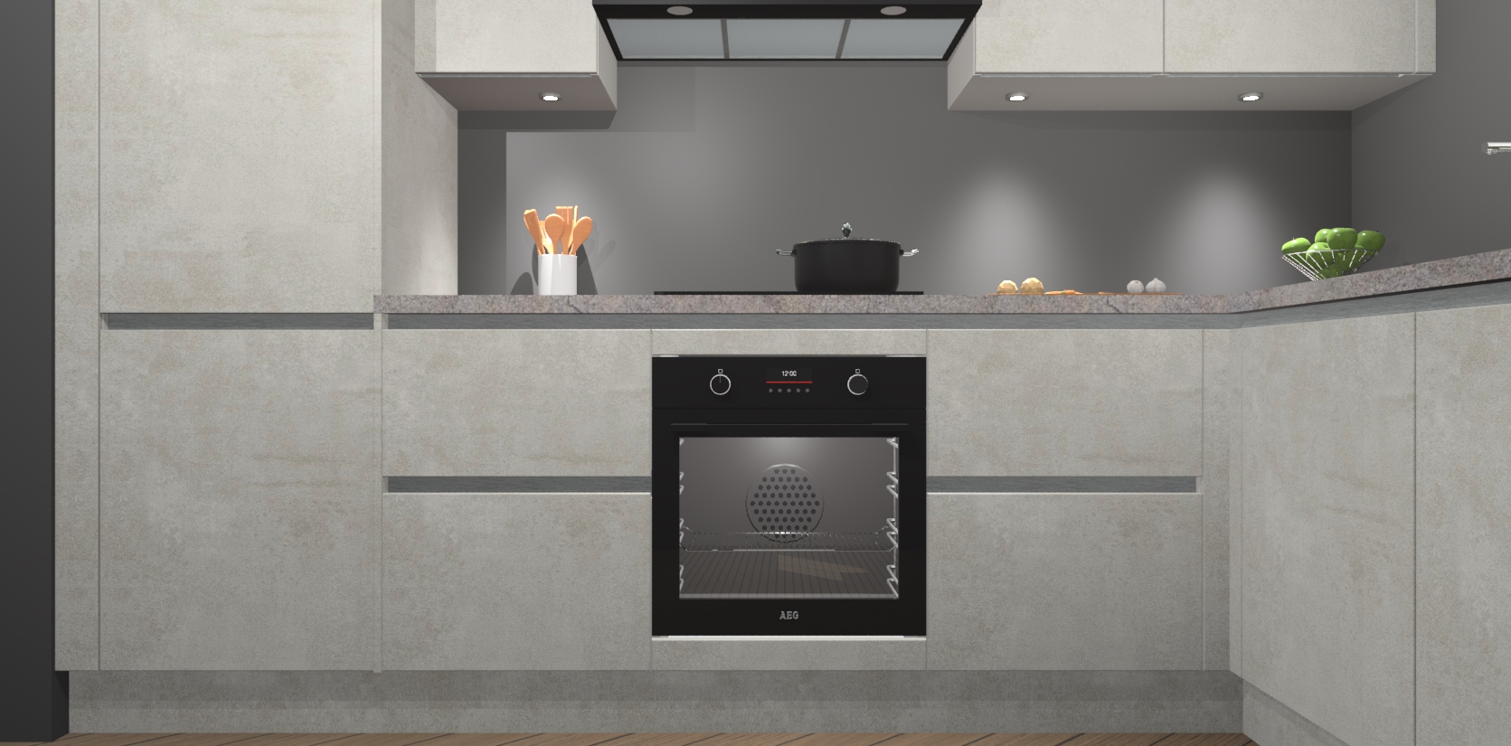 De Beton Opaal greeploze keuken Geneve is uitgerust met 5 inbouwapparaten - een oven, inductiekookplaat, afzuigkap, vaatwasser en koelkast - voor al uw kook- en bewaarbehoeftes. U kunt deze apparaten desgewenst eenvoudig upgraden naar AEG of de oven omruilen voor een combimagnetron na het plaatsen van uw bestelling. En met de soft close deuren, voldoende opbergruimte en kasten die voorgemonteerd worden geleverd, bent u in een mum van tijd klaar om heerlijke maaltijden te bereiden!