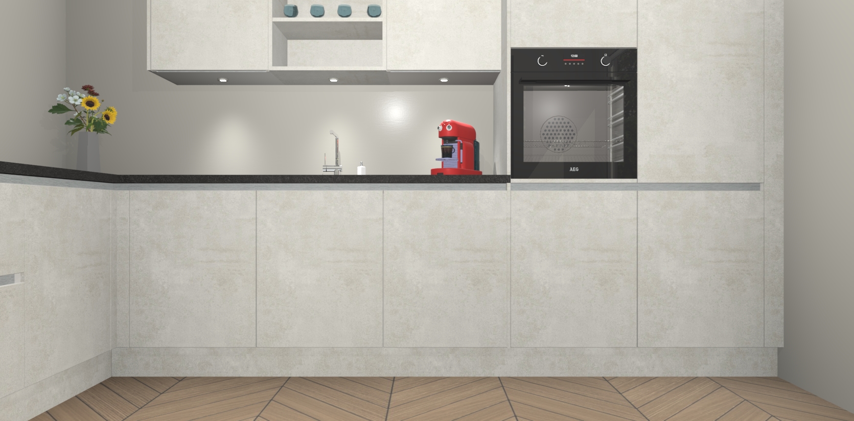 Dus waarom zou u wachten? Maak u klaar om bijeenkomsten voor familie en vrienden te organiseren en verblind ze met de stijlvol luxueuze Beton Opaal greeploze keuken Gotenburg! Met veel opbergruimte in een fractie van de tijd en een prijs die geen compromis in kwaliteit vereist - dit is misschien wel het meest decadente keukenkoopje dat er is!