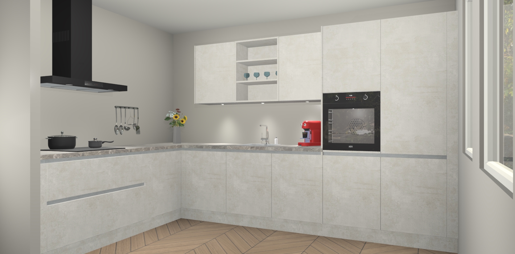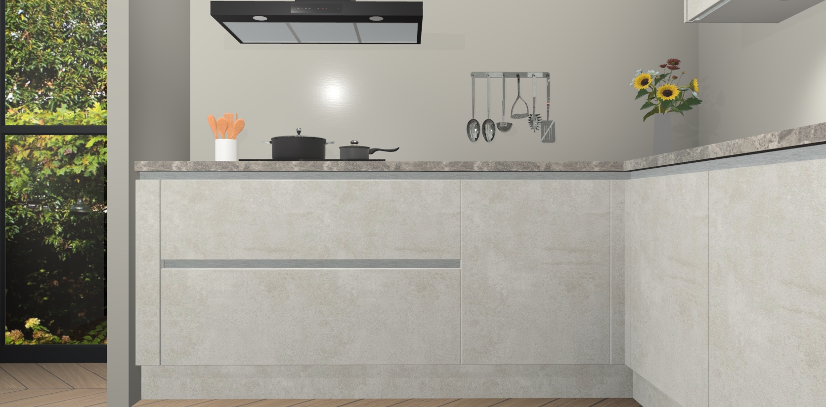 Dit is de perfecte keuken voor wie op zoek is naar een luxueuze stijl zonder zijn portemonnee te legen! Het chique ontwerp van Beton Opaal greeploze keuken Gotenburg voegt dat vleugje verfijning toe aan elk huis.