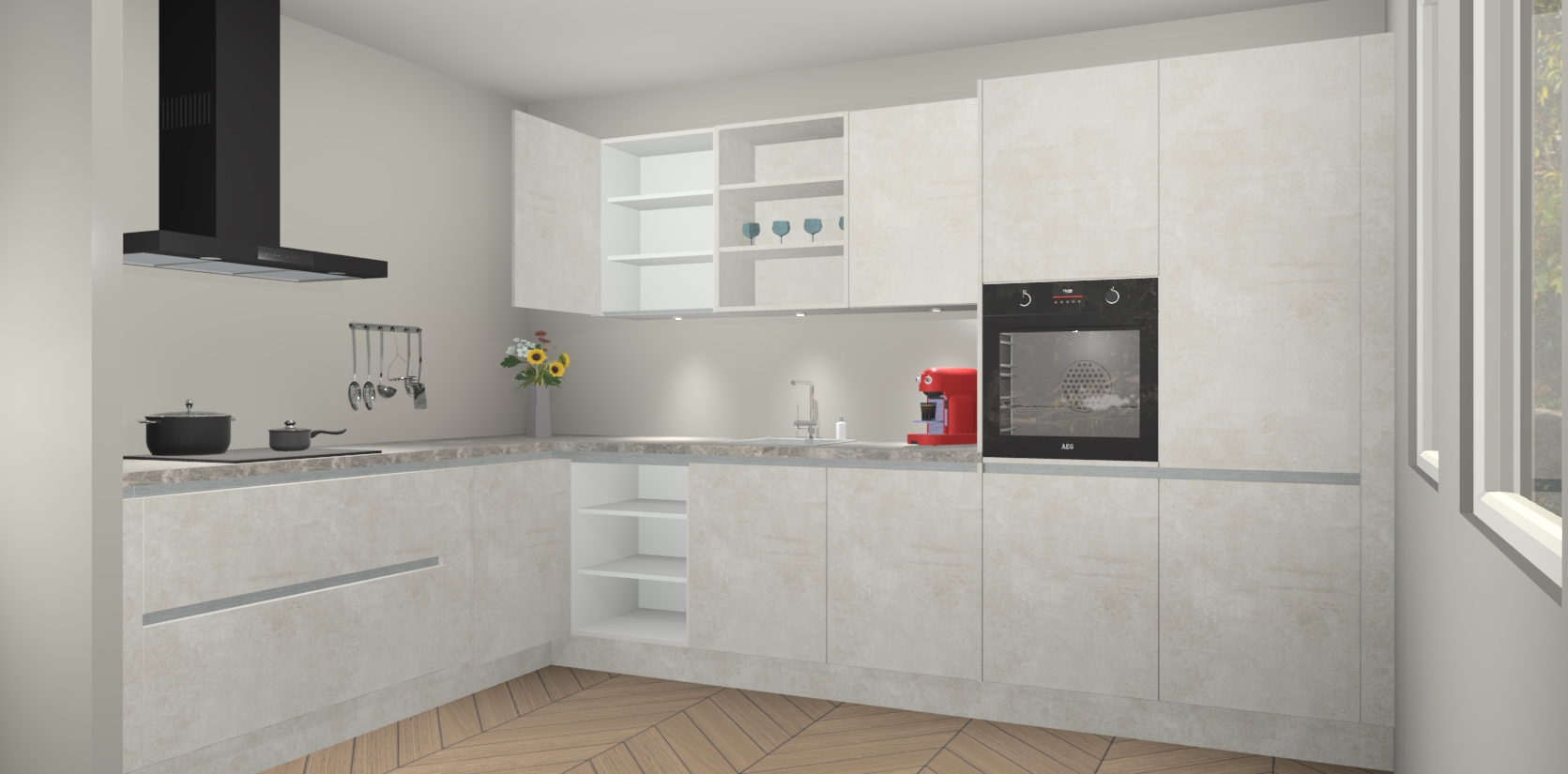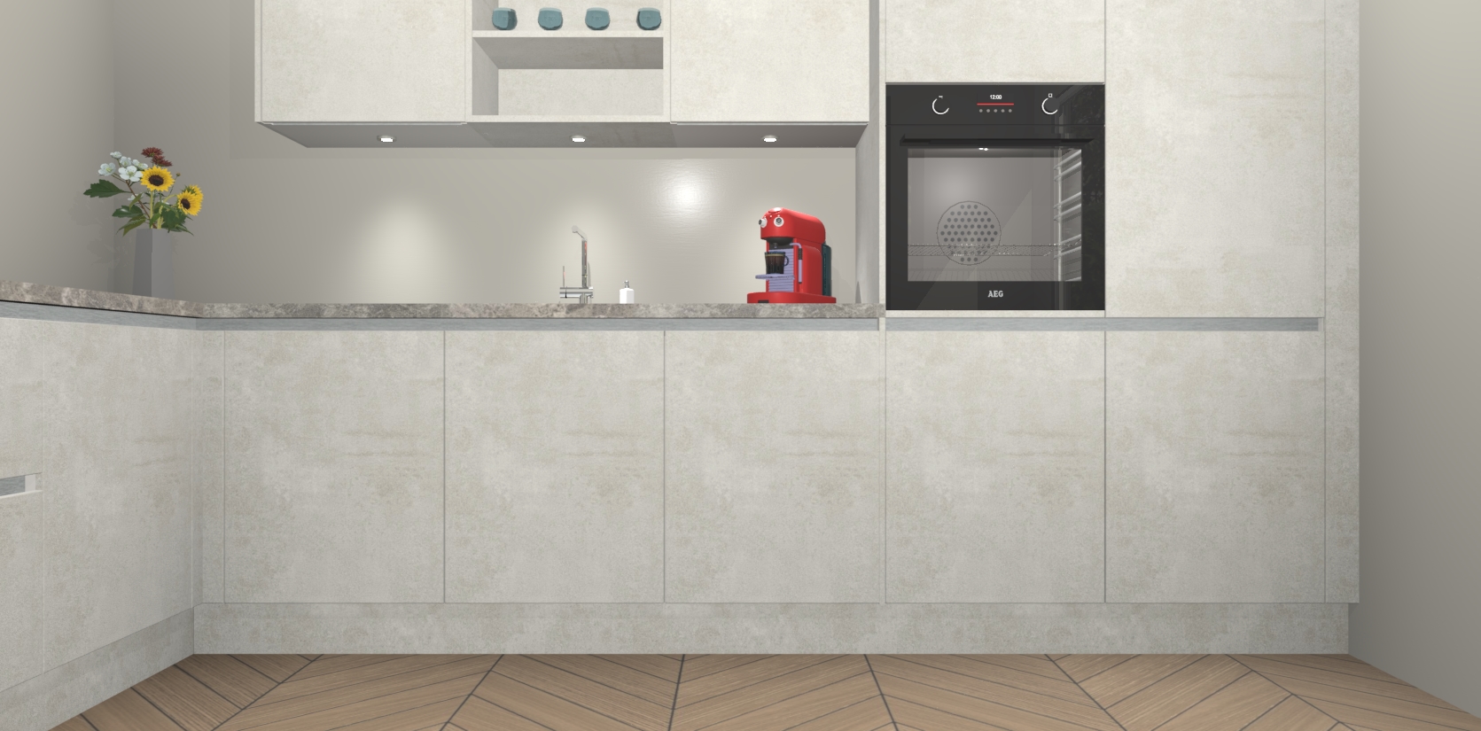 Dus waarom zou u wachten? Maak u klaar om bijeenkomsten voor familie en vrienden te organiseren en verblind ze met de stijlvol luxueuze Beton Opaal greeploze keuken Gotenburg! Met veel opbergruimte in een fractie van de tijd en een prijs die geen compromis in kwaliteit vereist - dit is misschien wel het meest decadente keukenkoopje dat er is!
