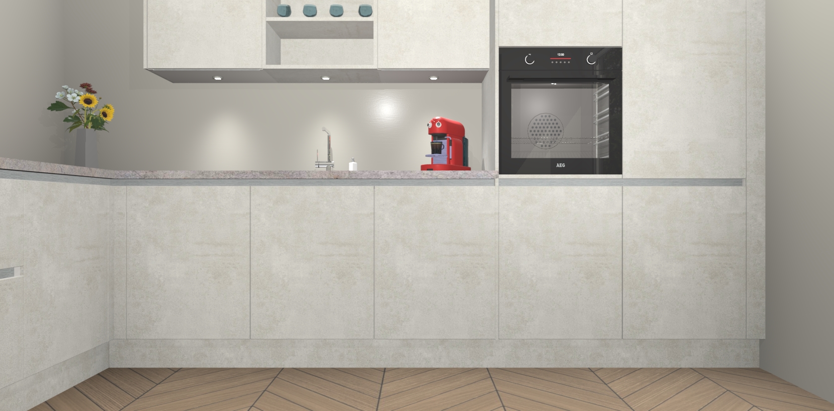 Inclusief plinten, stelpoten en werkblad