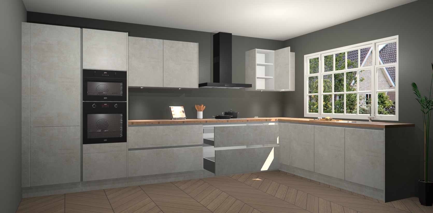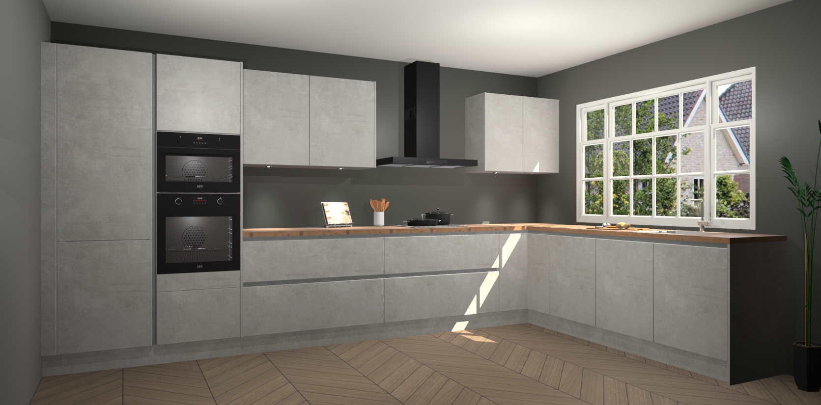 Kom dichtbij de perfecte keuken van uw dromen met de beton opaal greeploze keuken Graz. Met een prachtige houtlook en eigentijds ontwerp, straalt deze keuken warmte en sfeer uit. Of u nu liefhebber bent van traditionele of moderne stijlen, er is genoeg ruimte om aan al uw behoeften te voldoen.