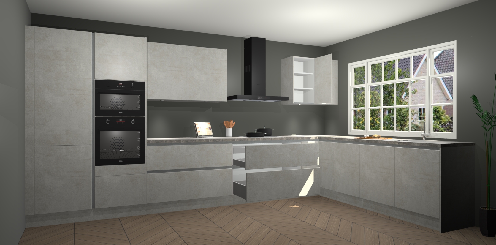 Kom dichtbij de perfecte keuken van uw dromen met de beton opaal greeploze keuken Graz. Met een prachtige houtlook en eigentijds ontwerp, straalt deze keuken warmte en sfeer uit. Of u nu liefhebber bent van traditionele of moderne stijlen, er is genoeg ruimte om aan al uw behoeften te voldoen.