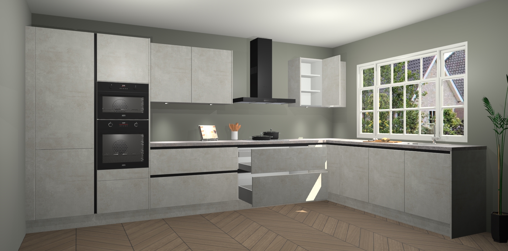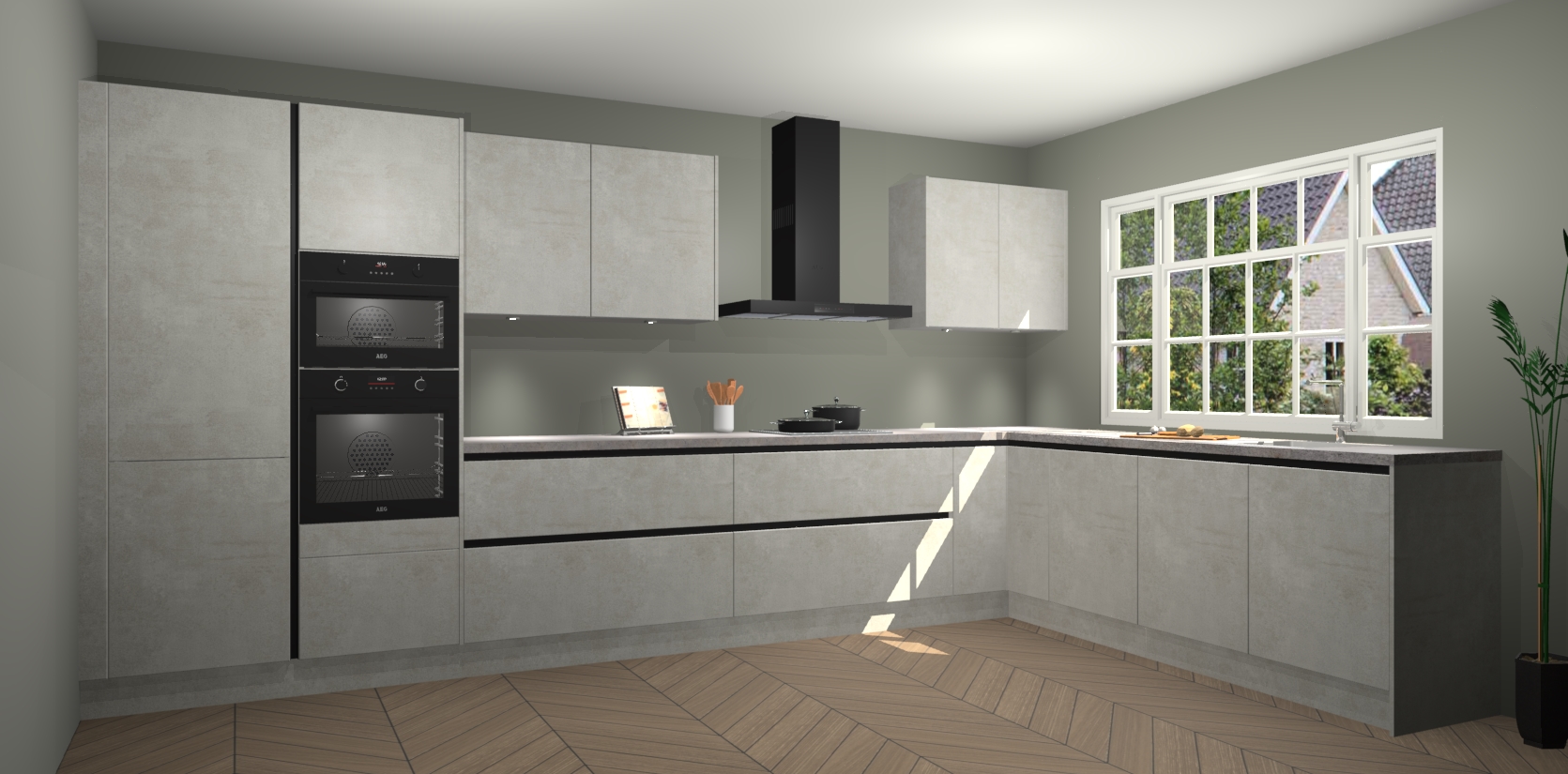 Kom dichtbij de perfecte keuken van uw dromen met de beton opaal greeploze keuken Graz. Met een prachtige houtlook en eigentijds ontwerp, straalt deze keuken warmte en sfeer uit. Of u nu liefhebber bent van traditionele of moderne stijlen, er is genoeg ruimte om aan al uw behoeften te voldoen.