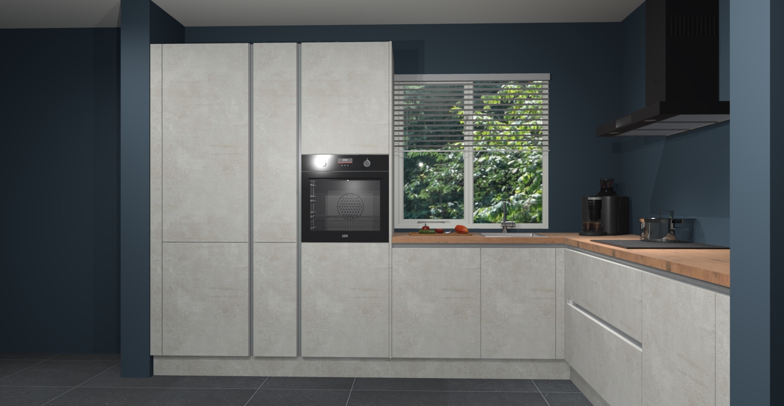 Met een modern, tijdloos design en ruime opslagruimte, zult u zich in no-time thuis voelen in uw nieuwe keuken. Uw leven wordt eenvoudiger met de soft-close deuren die voor het ultieme stille comfort zorgen - geen geluid dat u stoort terwijl u kookt. Ook is de keuken voorzien van 5 ingebouwde apparaten: een oven, inductie kookplaat, afzuigkap, vaatwasser en koelkast. Deze kunnen gemakkelijk na bestelling worden bijgewerkt naar AEG - waardoor uw luxe ervaring compleet is.