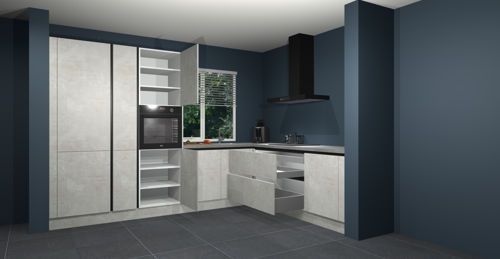 Wij presenteren de revolutie in keukens: de Beton Opaal keuken India. Met modern design, een tijdloos uiterlijk en kasten die al voor gemonteerd worden geleverd, laat deze stijlvolle keuken uw kookervaring op een hele nieuwe manier transformeren.