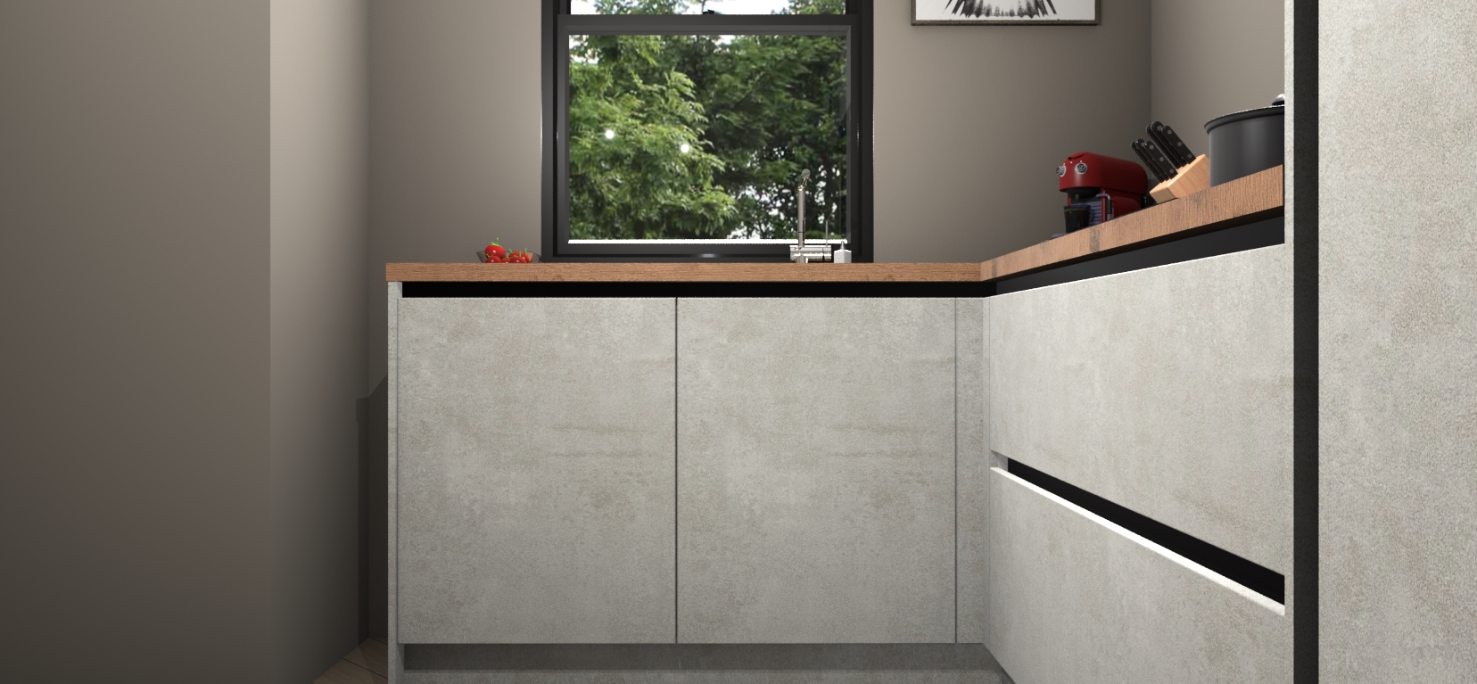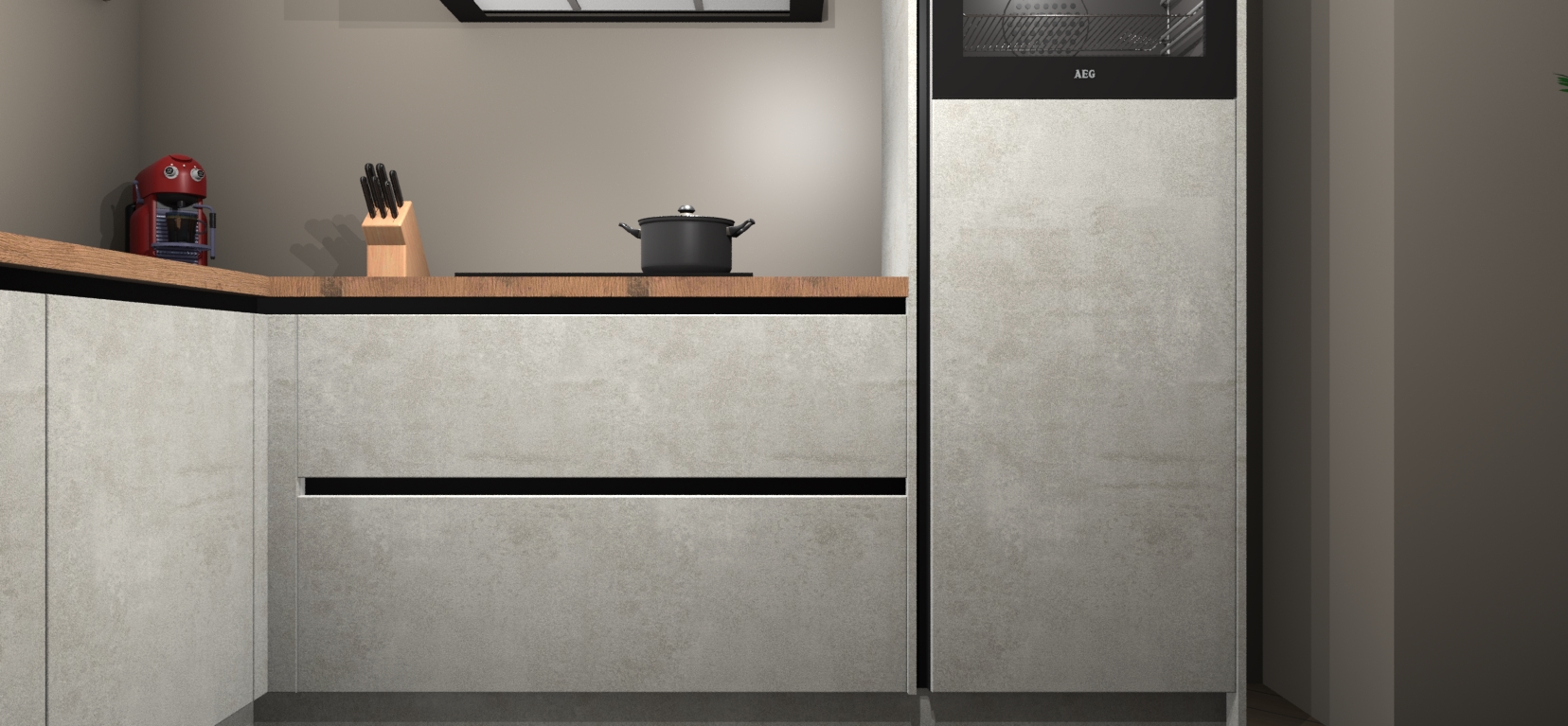 Als u op zoek bent naar de perfecte keuken om uw huis die luxe, moderne uitstraling te geven met een warme en gezellige touch, dan is uw zoektocht voorbij! Maak kennis met de Beton Opaal greeploze keuken Kinshasa.