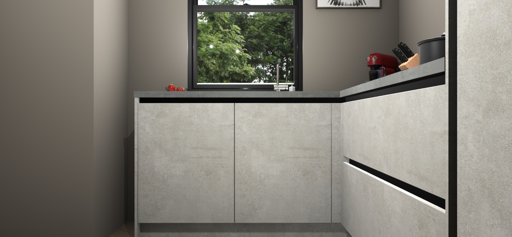 Als u op zoek bent naar de perfecte keuken om uw huis die luxe, moderne uitstraling te geven met een warme en gezellige touch, dan is uw zoektocht voorbij! Maak kennis met de Beton Opaal greeploze keuken Kinshasa.