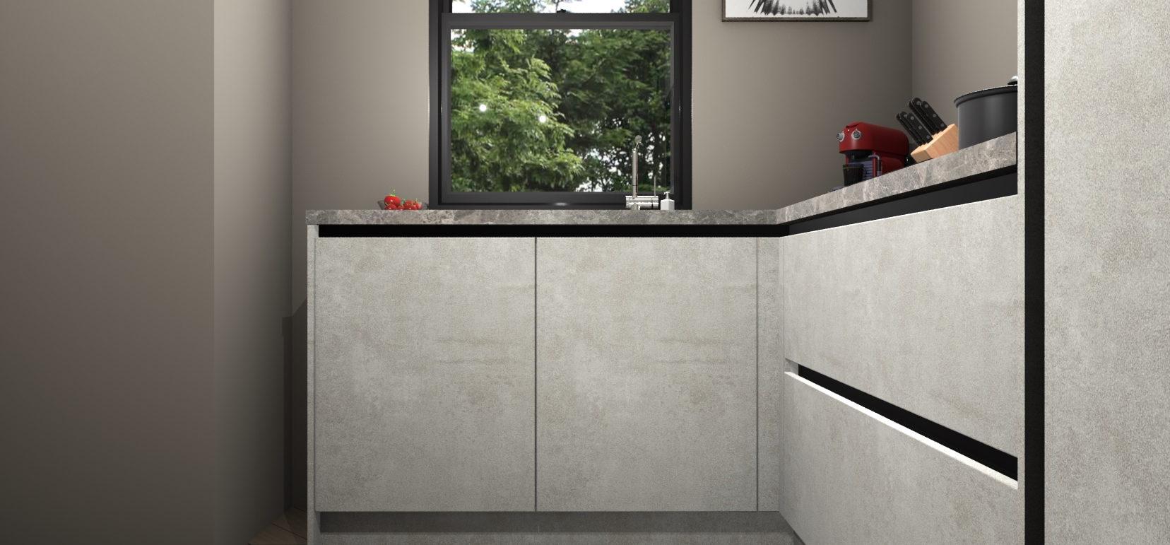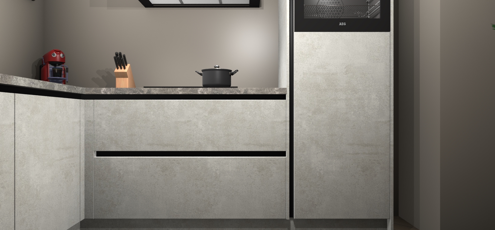 Als u op zoek bent naar de perfecte keuken om uw huis die luxe, moderne uitstraling te geven met een warme en gezellige touch, dan is uw zoektocht voorbij! Maak kennis met de Beton Opaal greeploze keuken Kinshasa.
