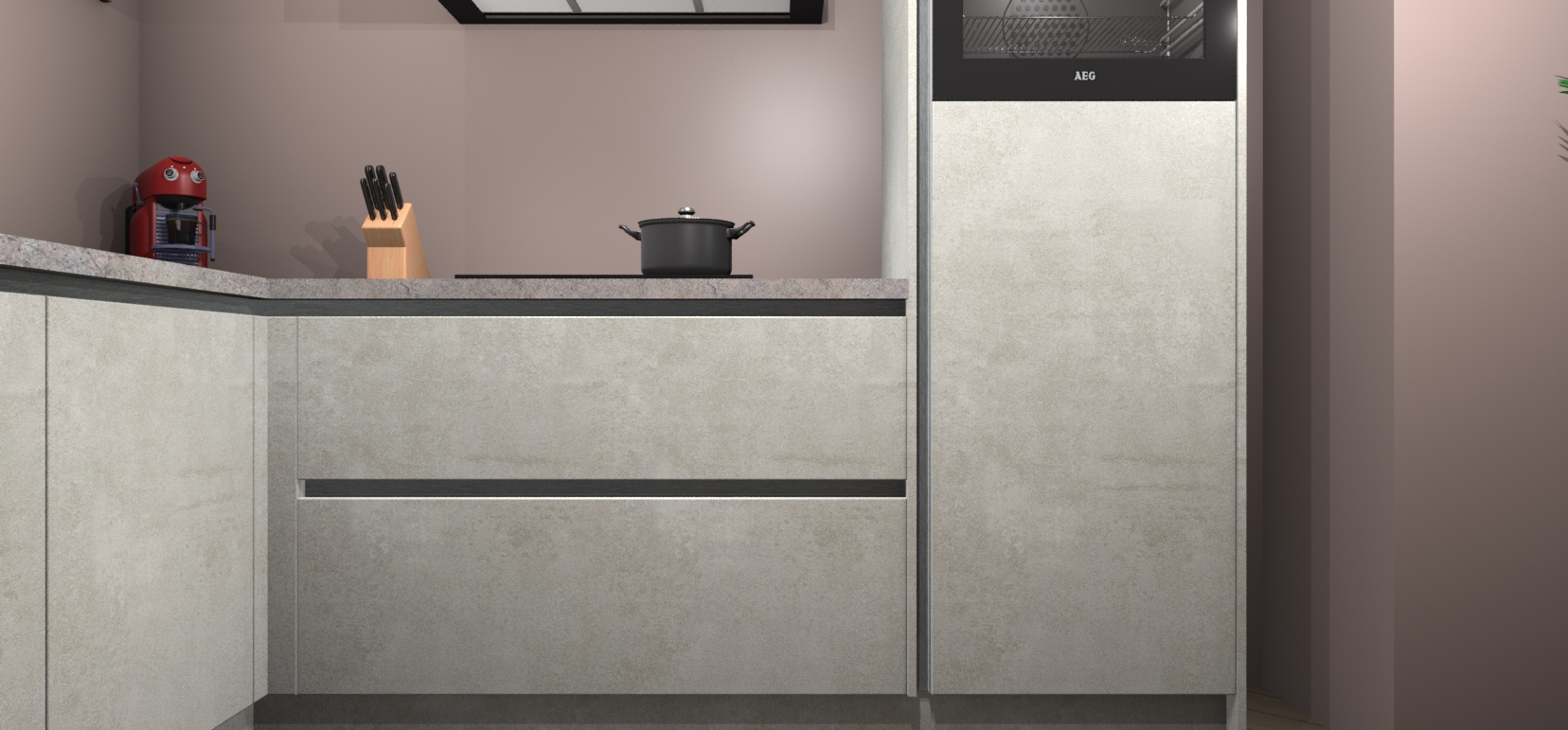 Als u op zoek bent naar de perfecte keuken om uw huis die luxe, moderne uitstraling te geven met een warme en gezellige touch, dan is uw zoektocht voorbij! Maak kennis met de Beton Opaal greeploze keuken Kinshasa.