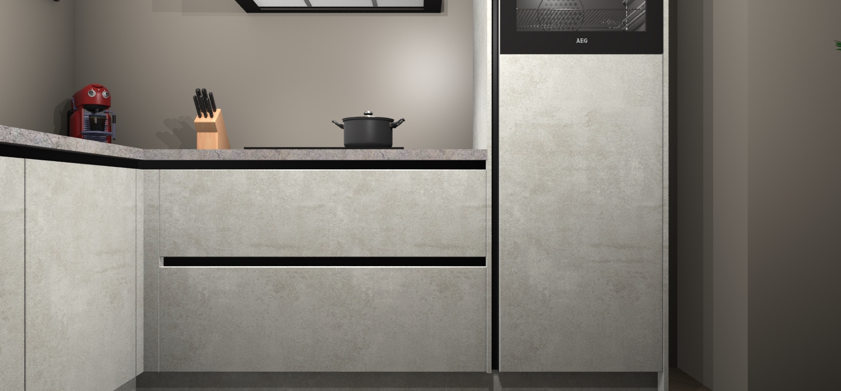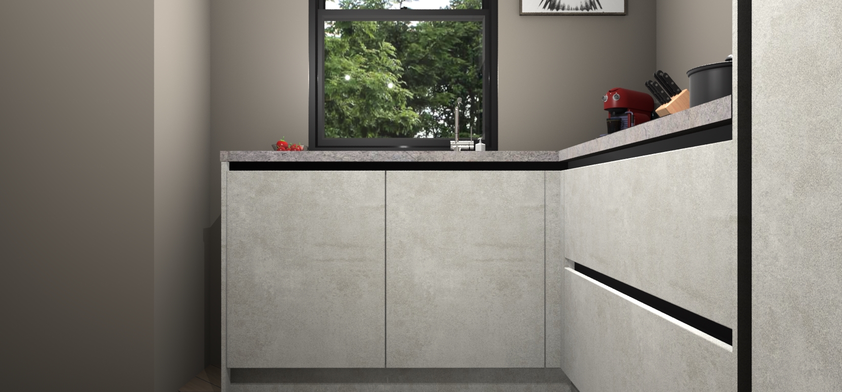 Als u op zoek bent naar de perfecte keuken om uw huis die luxe, moderne uitstraling te geven met een warme en gezellige touch, dan is uw zoektocht voorbij! Maak kennis met de Beton Opaal greeploze keuken Kinshasa.