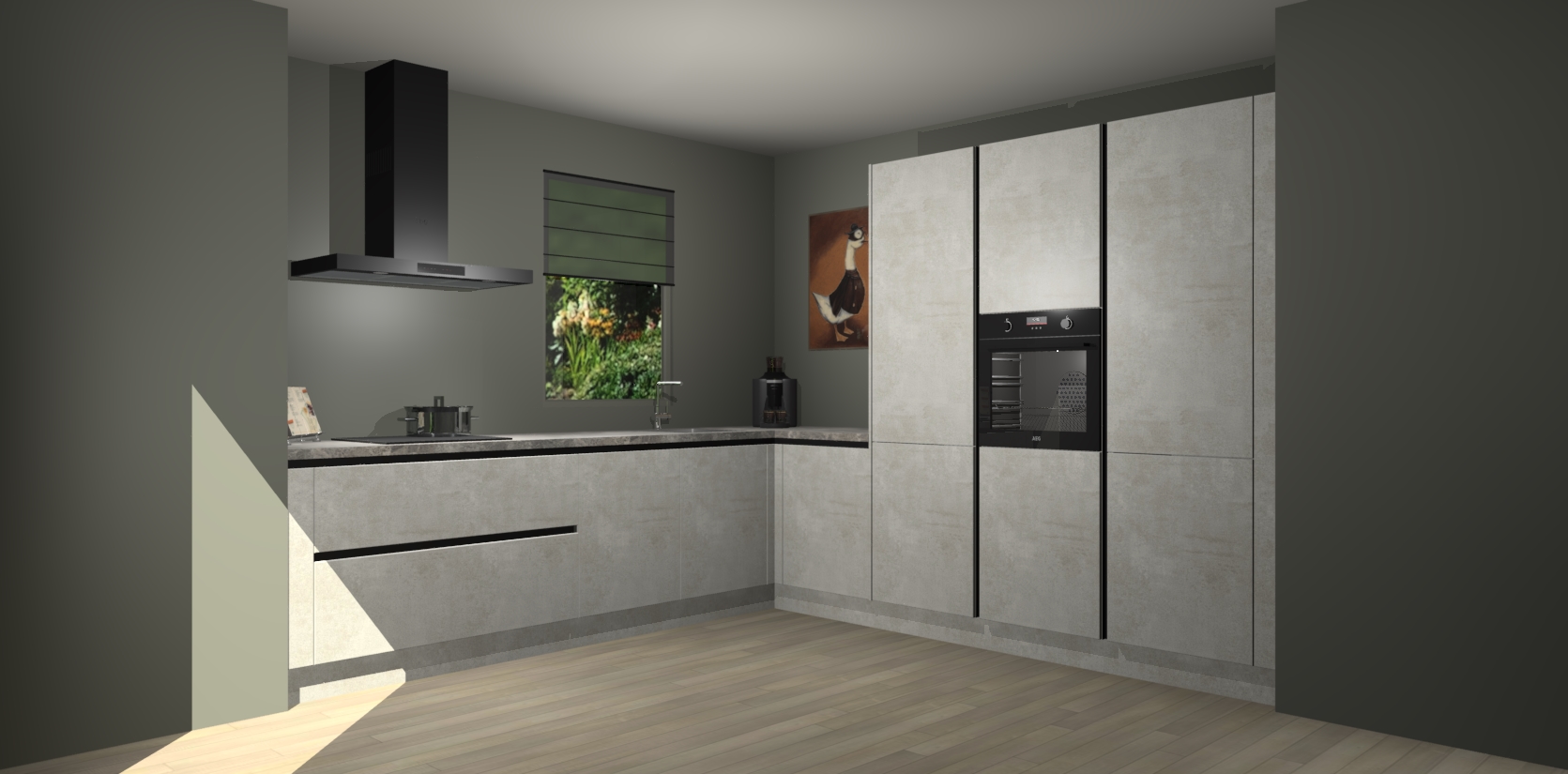 Welkom bij de Beton Opaal greeploze keuken Laos. Deze prachtige keuken zal de komende jaren het middelpunt van de belangstelling in uw huis zijn. Uitgerust met vijf inbouwapparaten komt u nooit kookgereedschap tekort. Bovendien geeft de warme houtlook elke ruimte een uitnodigende en tijdloze uitstraling.
