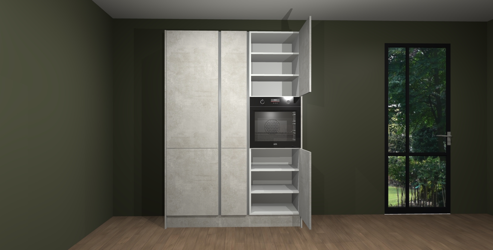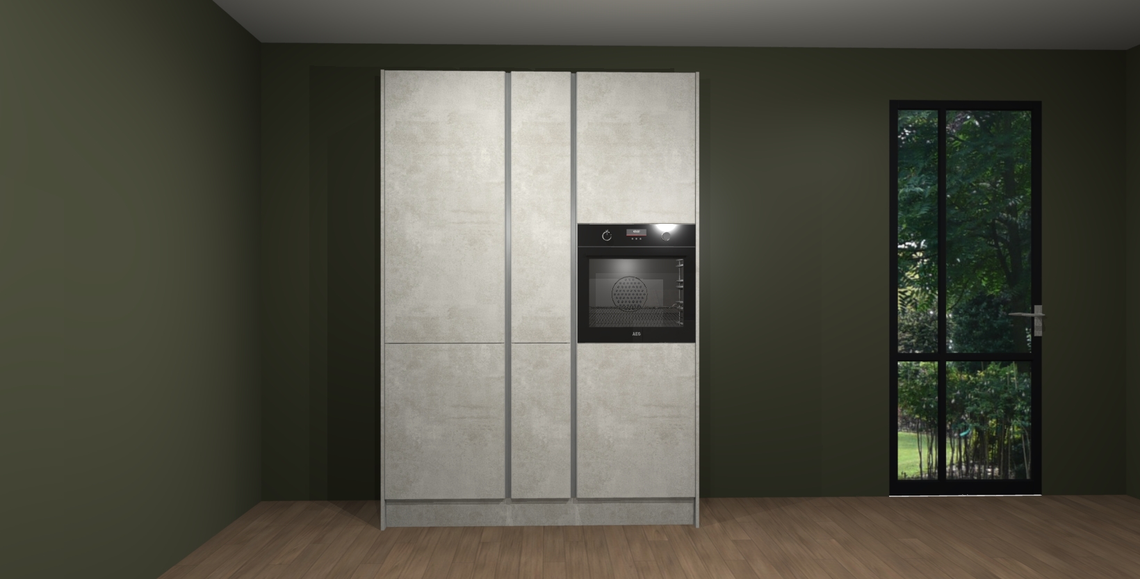 Met een modern, tijdloos design en ruime opslagruimte, zult u zich in no-time thuis voelen in uw nieuwe keuken. Uw leven wordt eenvoudiger met de soft-close deuren die voor het ultieme stille comfort zorgen - geen geluid dat u stoort terwijl u kookt. Ook is de keuken voorzien van 5 ingebouwde apparaten: een oven, inductie kookplaat, afzuigkap, vaatwasser en koelkast. Deze kunnen gemakkelijk na bestelling worden bijgewerkt naar AEG - waardoor uw luxe ervaring compleet is.