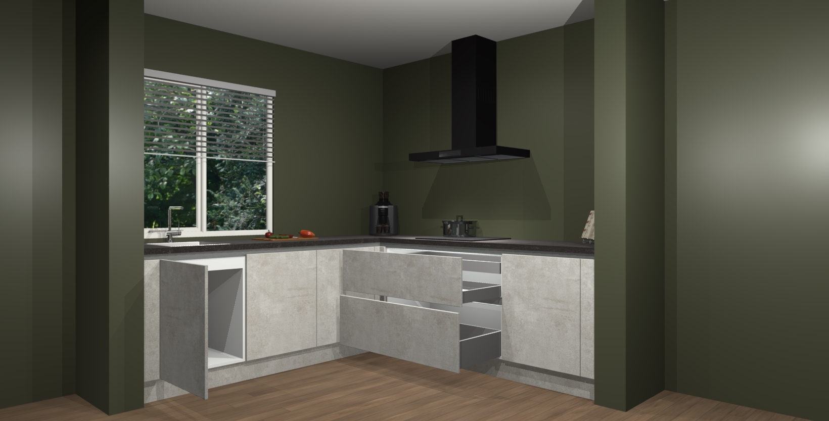 In deze box zijn alle kleuren verzameld van de deuren en werkbladen. Vraag de gratis kleurenbox aan en kijk thuis rustig verder!