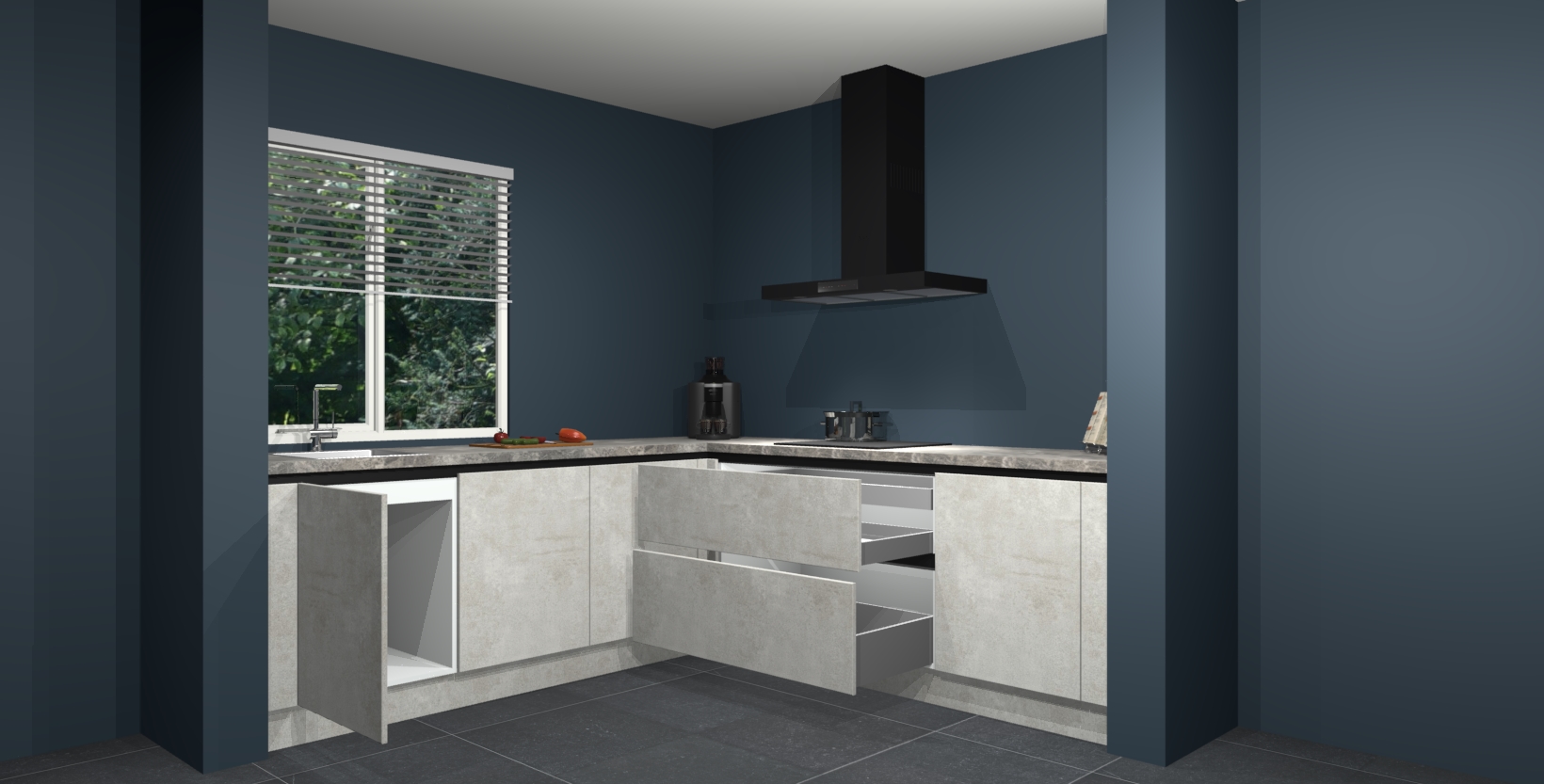 In deze box zijn alle kleuren verzameld van de deuren en werkbladen. Vraag de gratis kleurenbox aan en kijk thuis rustig verder!