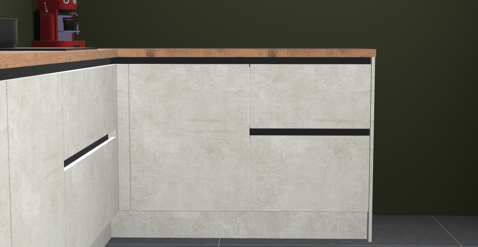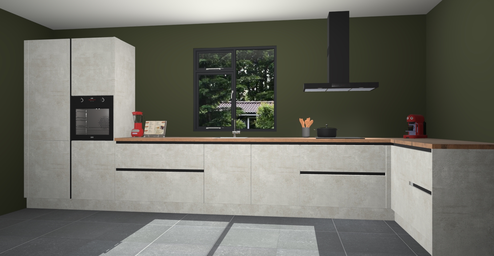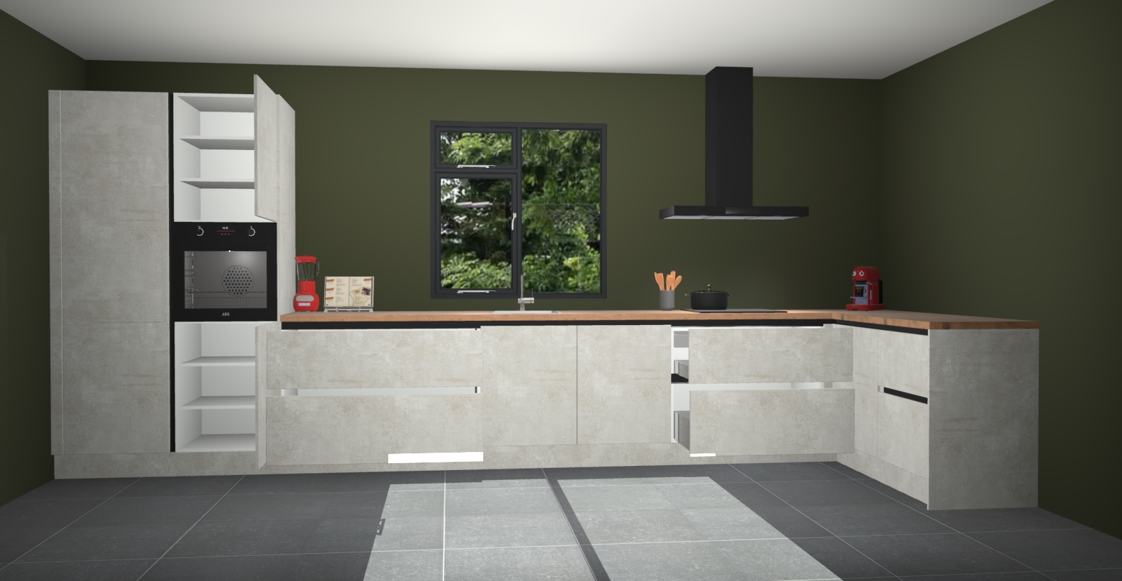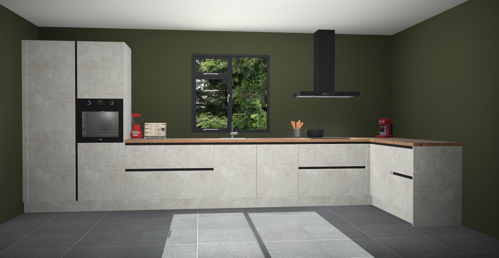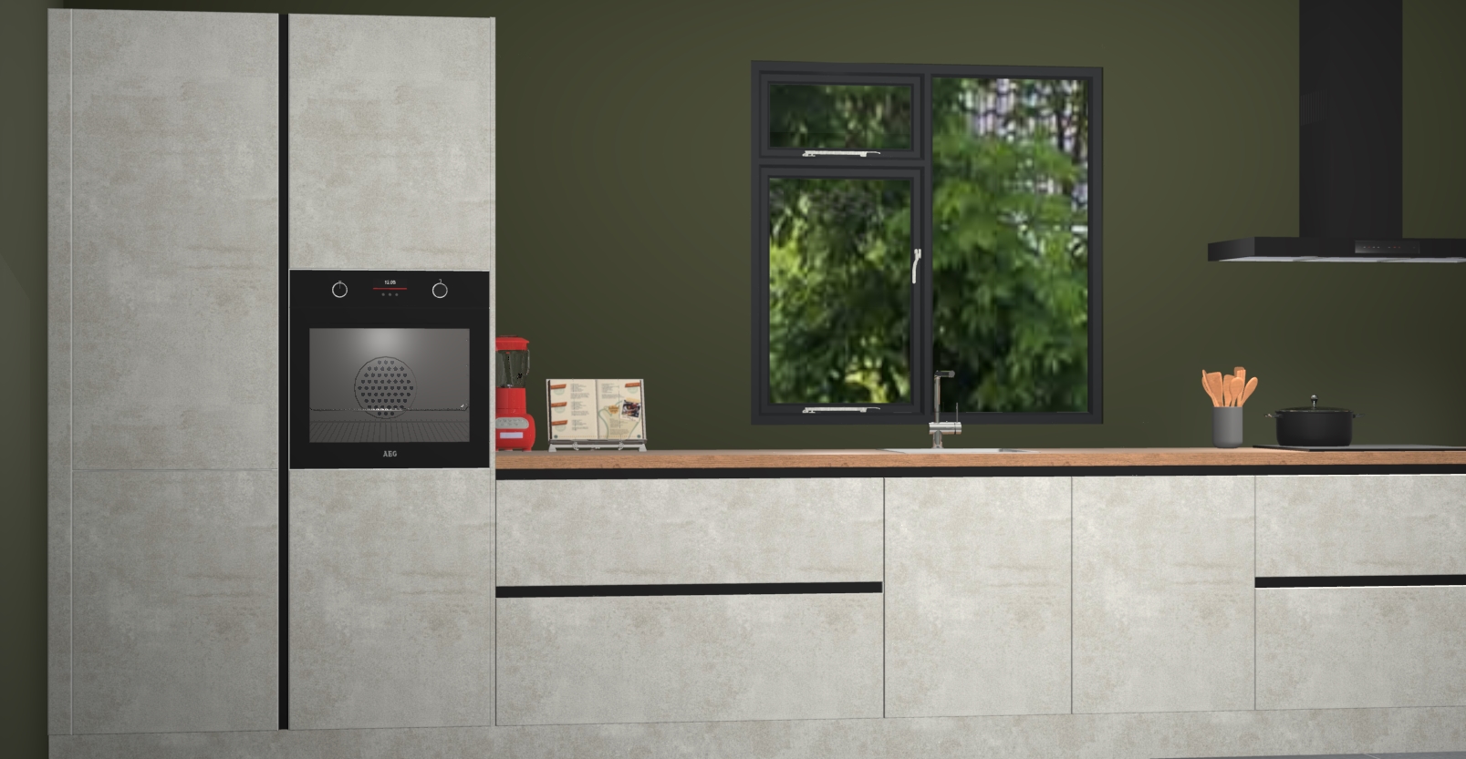 De Beton opaal keuken Lille wordt geleverd met vijf inbouwapparaten - een oven, inductiekookplaat, afzuigkap, vaatwasser en koelkast. Maar dat is nog niet alles! Na bestelling kunnen deze apparaten eenvoudig worden geüpgraded naar premium AEG-apparatuur. Bovendien is er zelfs de optie om de oven te vervangen door een combimagnetron of uw inductiekookplaat te vervangen door een kookplaat met geïntegreerde afzuiging.