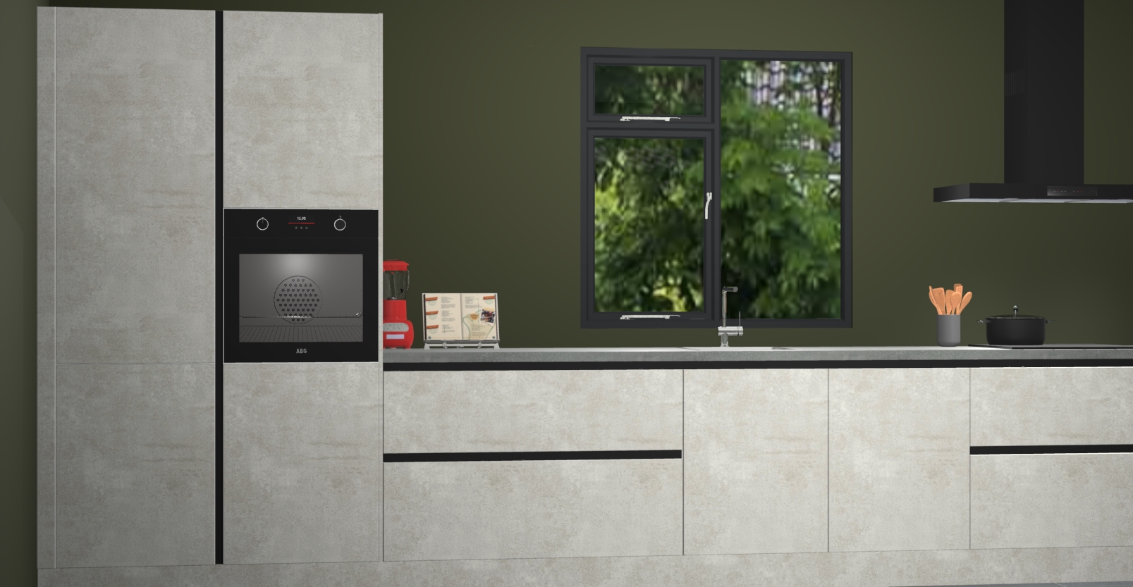 De Beton opaal keuken Lille wordt geleverd met vijf inbouwapparaten - een oven, inductiekookplaat, afzuigkap, vaatwasser en koelkast. Maar dat is nog niet alles! Na bestelling kunnen deze apparaten eenvoudig worden geüpgraded naar premium AEG-apparatuur. Bovendien is er zelfs de optie om de oven te vervangen door een combimagnetron of uw inductiekookplaat te vervangen door een kookplaat met geïntegreerde afzuiging.