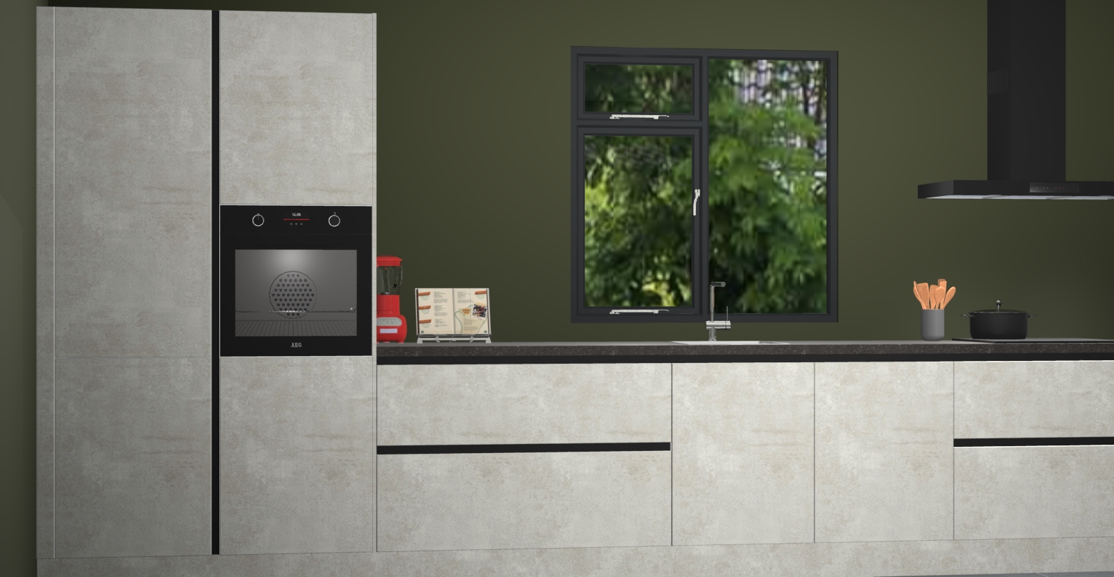 De Beton opaal keuken Lille wordt geleverd met vijf inbouwapparaten - een oven, inductiekookplaat, afzuigkap, vaatwasser en koelkast. Maar dat is nog niet alles! Na bestelling kunnen deze apparaten eenvoudig worden geüpgraded naar premium AEG-apparatuur. Bovendien is er zelfs de optie om de oven te vervangen door een combimagnetron of uw inductiekookplaat te vervangen door een kookplaat met geïntegreerde afzuiging.