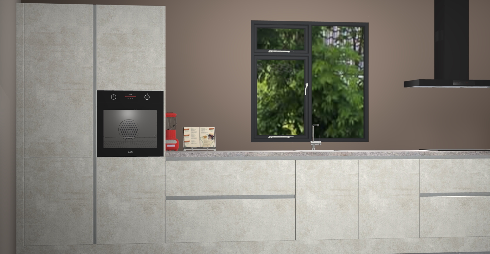 De Beton opaal keuken Lille wordt geleverd met vijf inbouwapparaten - een oven, inductiekookplaat, afzuigkap, vaatwasser en koelkast. Maar dat is nog niet alles! Na bestelling kunnen deze apparaten eenvoudig worden geüpgraded naar premium AEG-apparatuur. Bovendien is er zelfs de optie om de oven te vervangen door een combimagnetron of uw inductiekookplaat te vervangen door een kookplaat met geïntegreerde afzuiging.