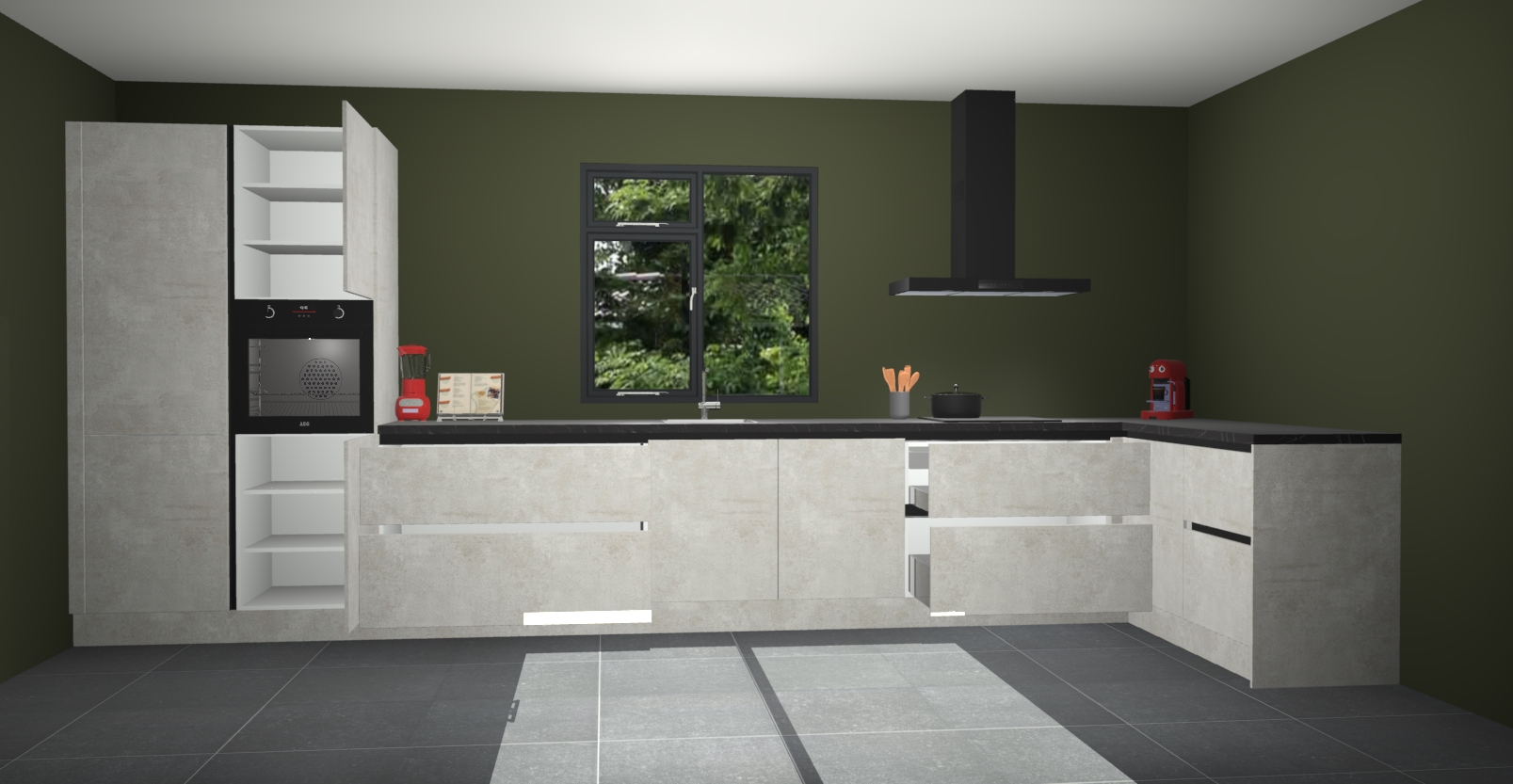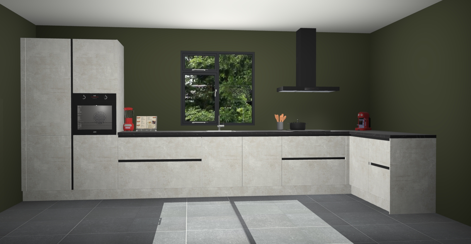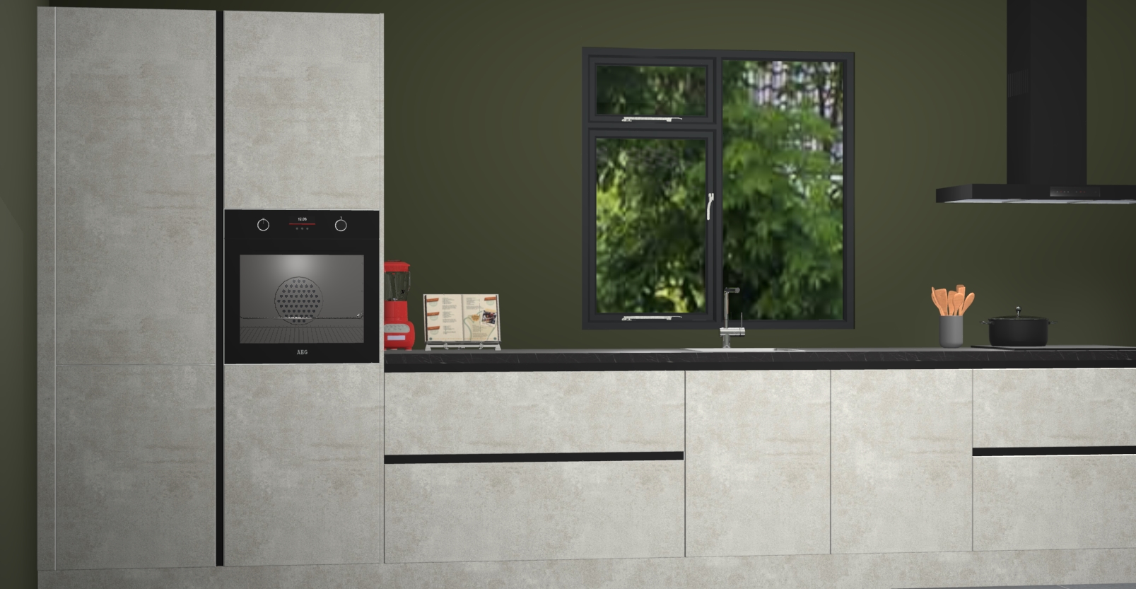 De Beton opaal keuken Lille wordt geleverd met vijf inbouwapparaten - een oven, inductiekookplaat, afzuigkap, vaatwasser en koelkast. Maar dat is nog niet alles! Na bestelling kunnen deze apparaten eenvoudig worden geüpgraded naar premium AEG-apparatuur. Bovendien is er zelfs de optie om de oven te vervangen door een combimagnetron of uw inductiekookplaat te vervangen door een kookplaat met geïntegreerde afzuiging.