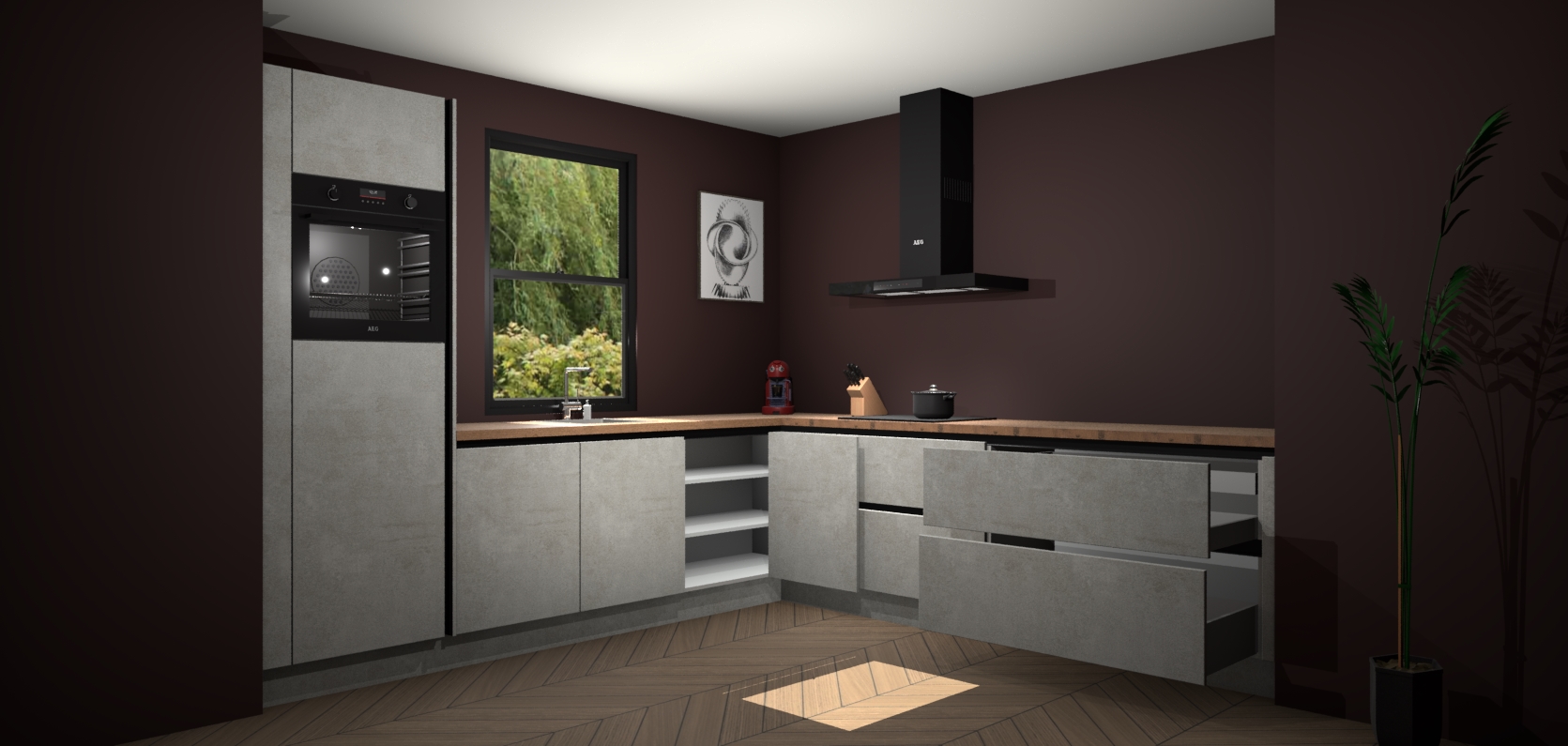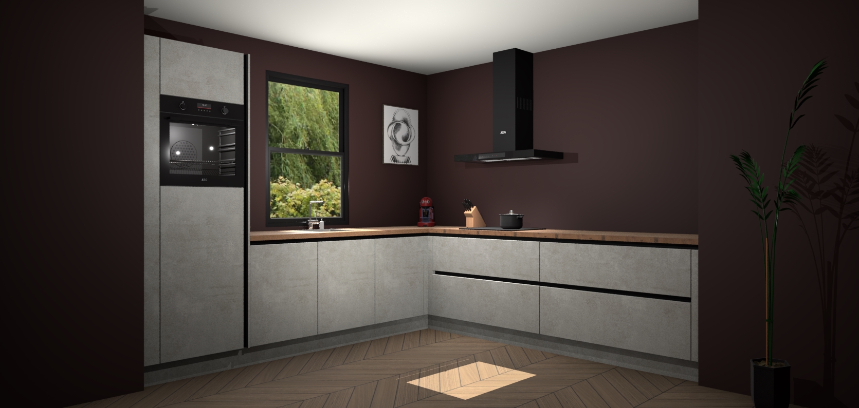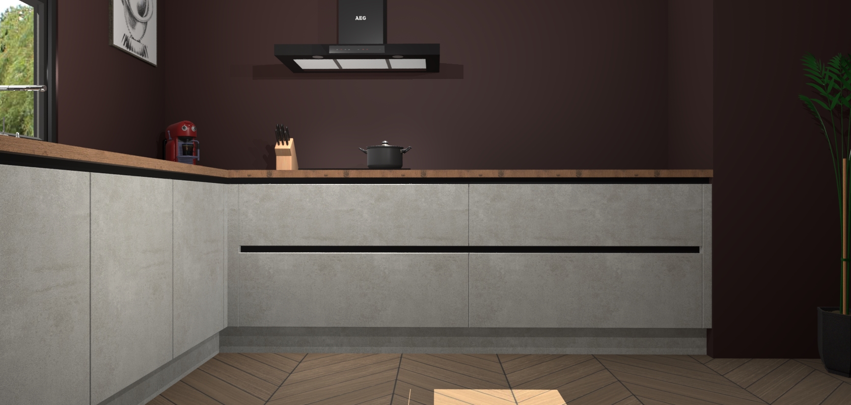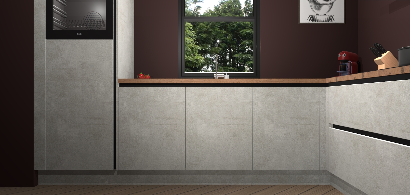 Welkom bij de Beton opaal greeploze keuken Lublin. Deze prachtige keuken zal de komende jaren het middelpunt van de belangstelling in uw huis zijn. Uitgerust met vijf inbouwapparaten komt u nooit kookgereedschap tekort. Bovendien geeft de warme houtlook elke ruimte een uitnodigende en tijdloze uitstraling.