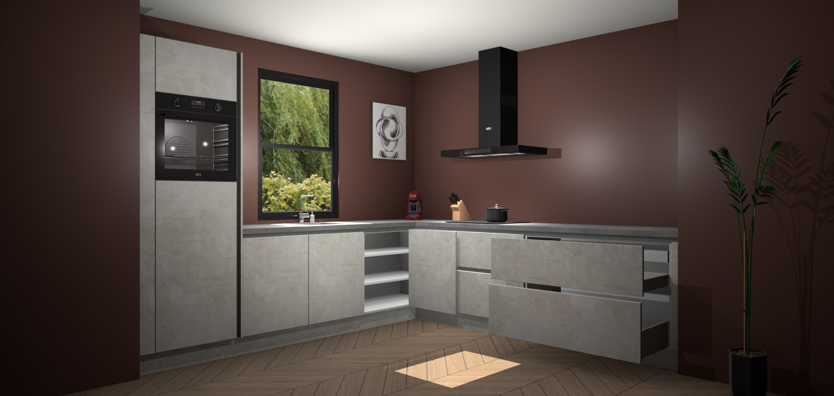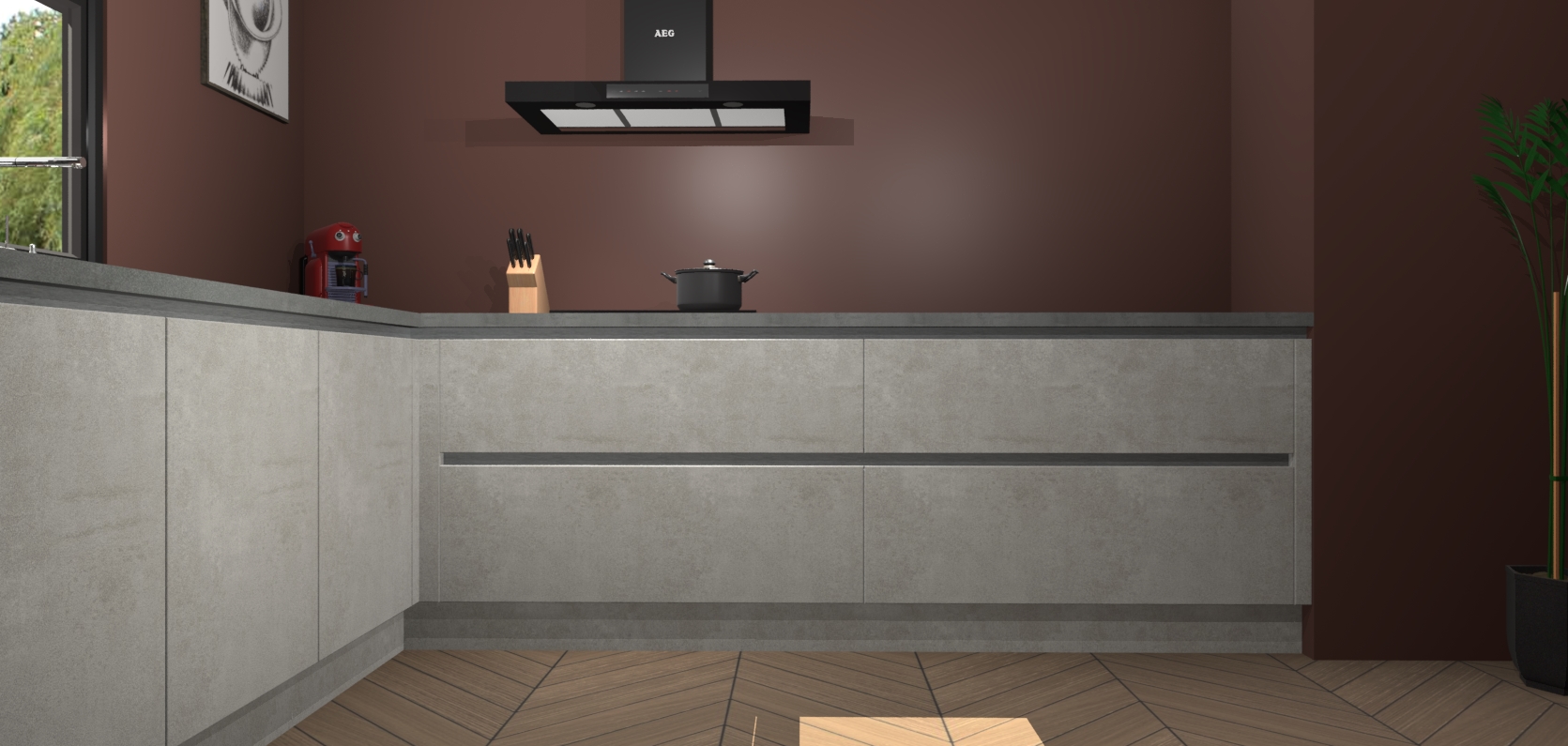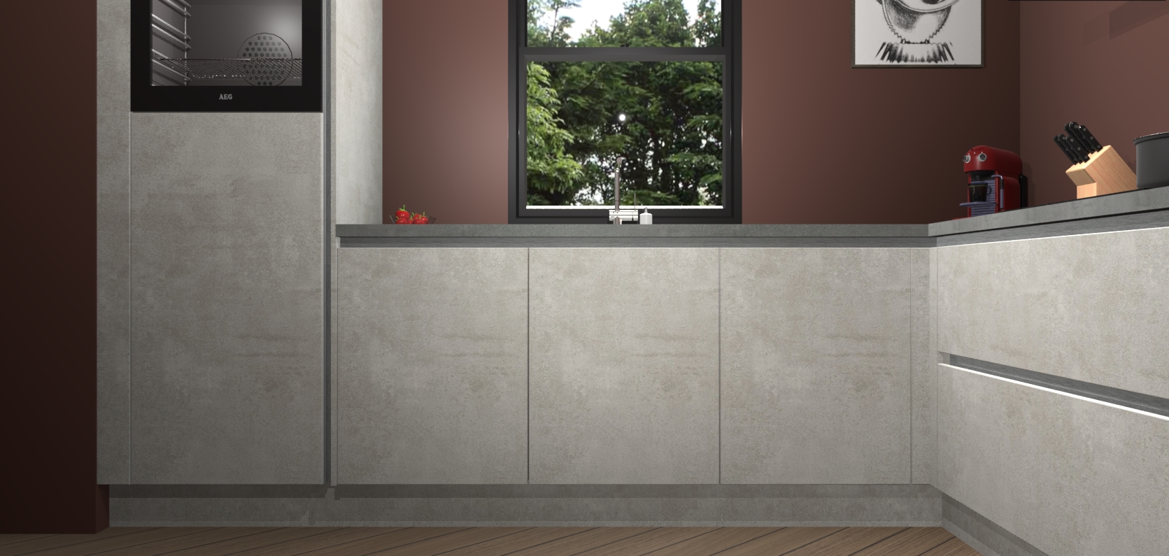Welkom bij de Beton opaal greeploze keuken Lublin. Deze prachtige keuken zal de komende jaren het middelpunt van de belangstelling in uw huis zijn. Uitgerust met vijf inbouwapparaten komt u nooit kookgereedschap tekort. Bovendien geeft de warme houtlook elke ruimte een uitnodigende en tijdloze uitstraling.