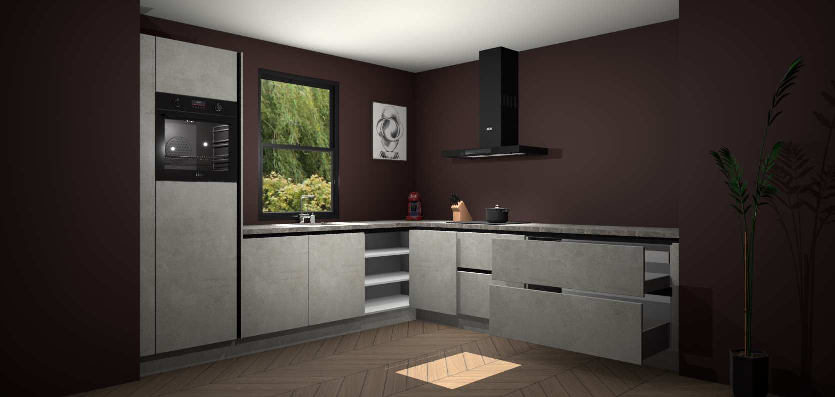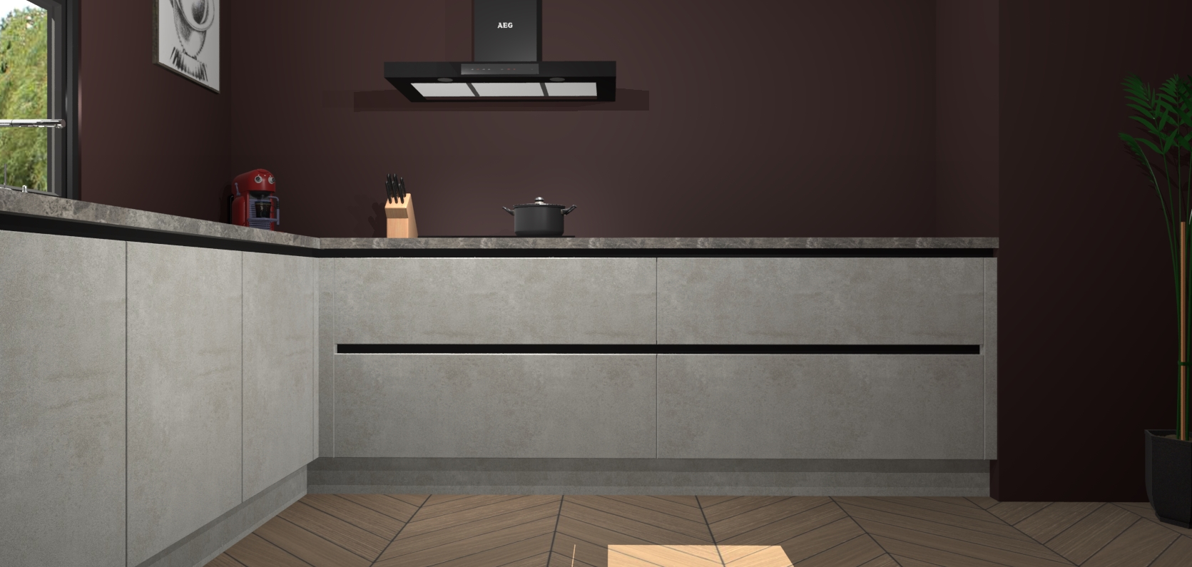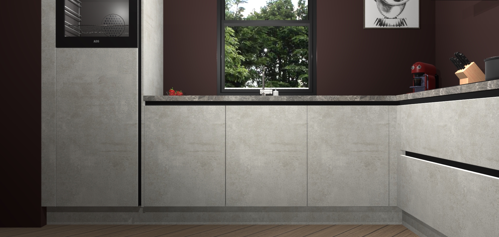 Welkom bij de Beton opaal greeploze keuken Lublin. Deze prachtige keuken zal de komende jaren het middelpunt van de belangstelling in uw huis zijn. Uitgerust met vijf inbouwapparaten komt u nooit kookgereedschap tekort. Bovendien geeft de warme houtlook elke ruimte een uitnodigende en tijdloze uitstraling.