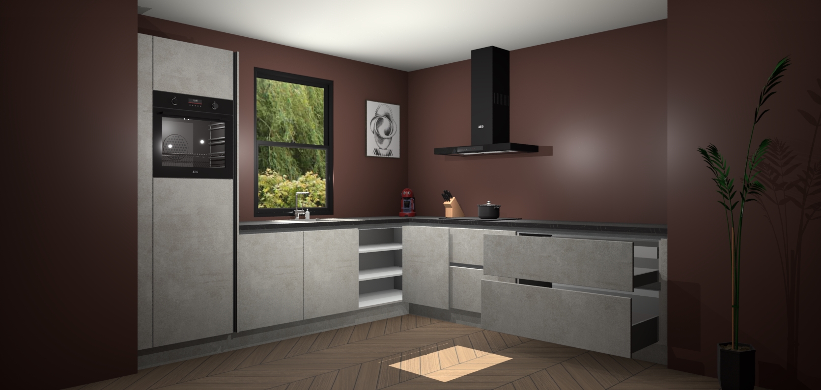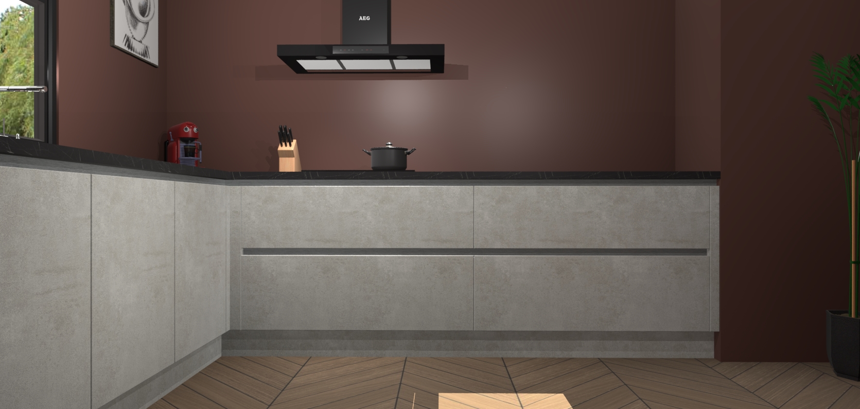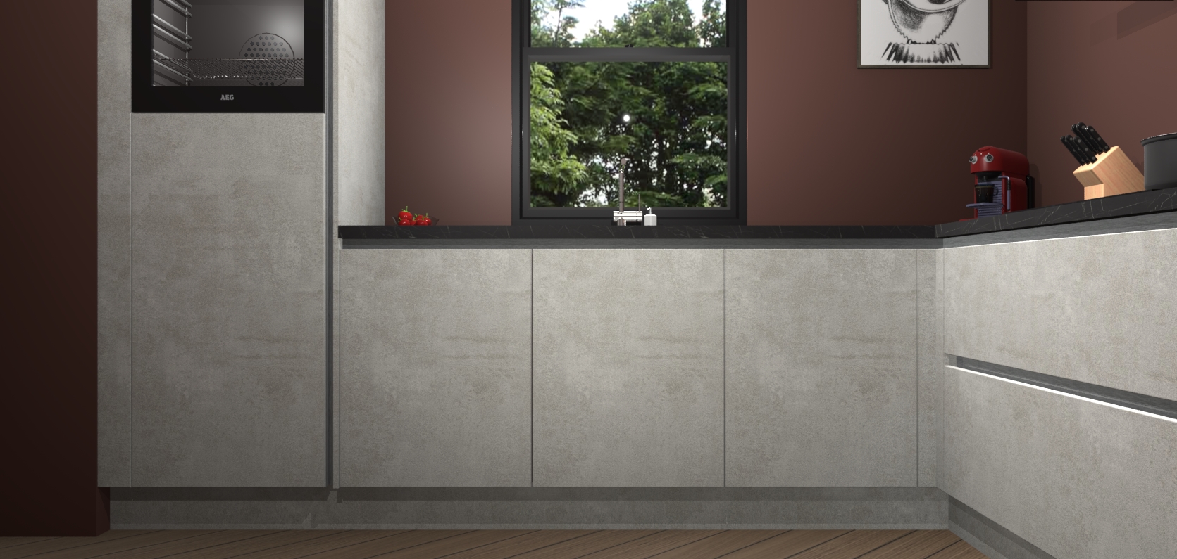 Welkom bij de Beton opaal greeploze keuken Lublin. Deze prachtige keuken zal de komende jaren het middelpunt van de belangstelling in uw huis zijn. Uitgerust met vijf inbouwapparaten komt u nooit kookgereedschap tekort. Bovendien geeft de warme houtlook elke ruimte een uitnodigende en tijdloze uitstraling.