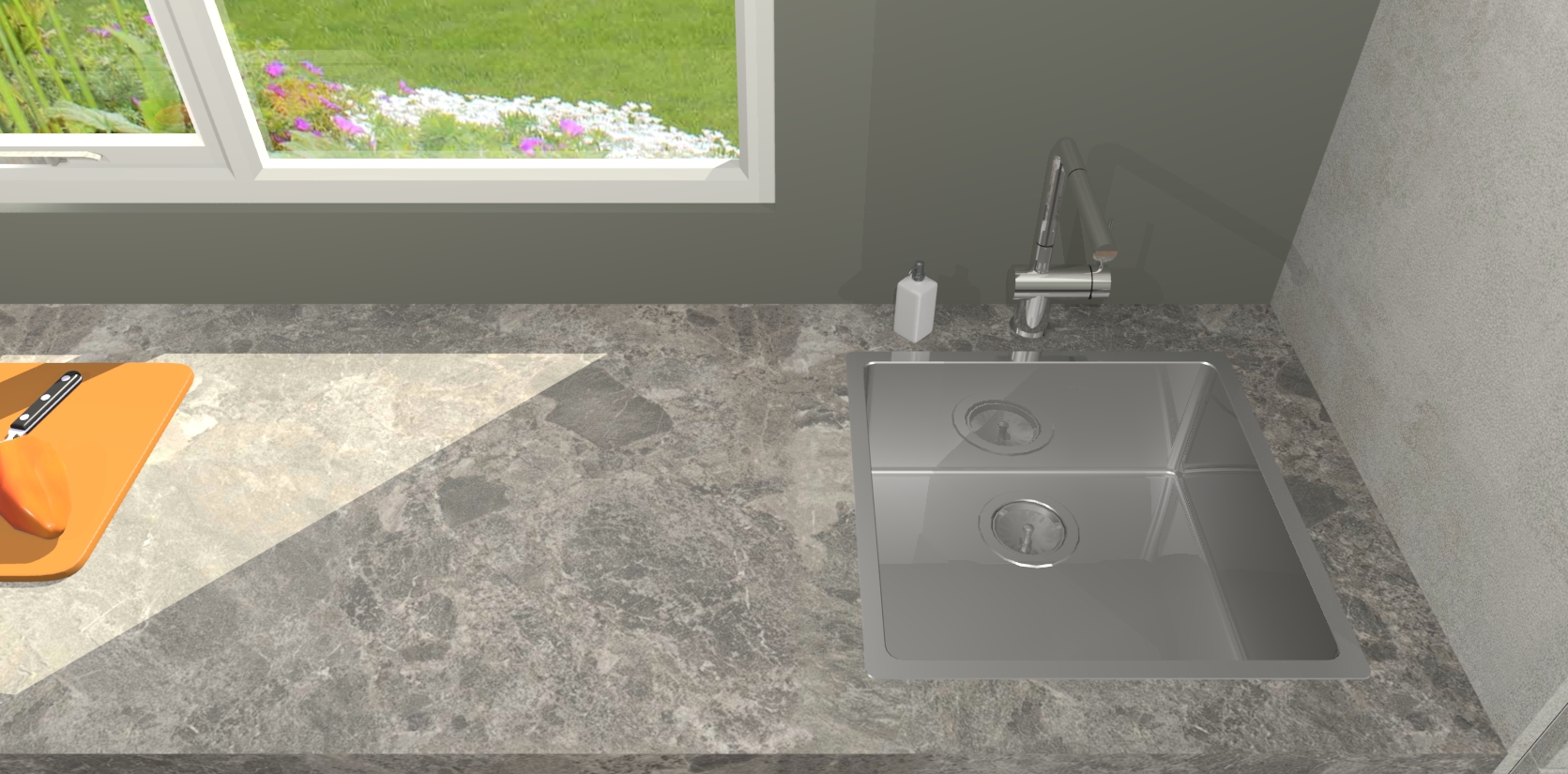 - De spoelbak is nog niet in gevreesd. Dit dient tijdens het werk gedaan te worden