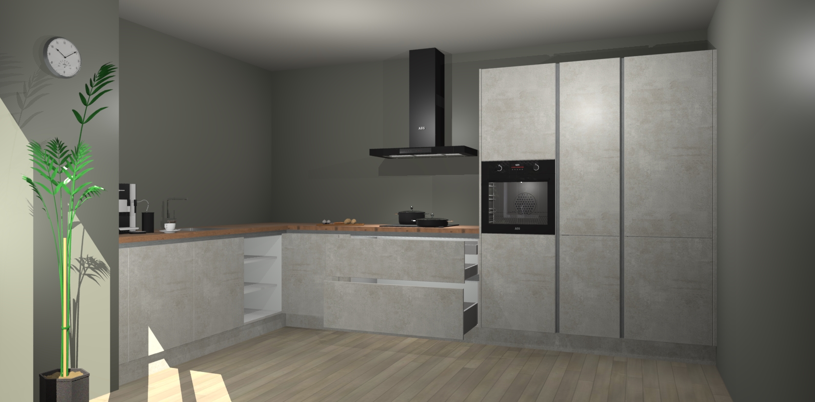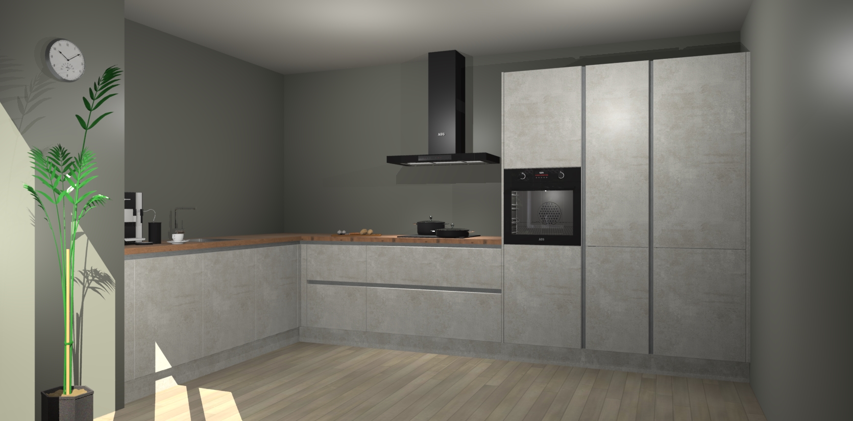 Welkom bij de beton opaal greeploze keuken Nuuk. Deze prachtige keuken zal de komende jaren het middelpunt van de belangstelling in uw huis zijn. Uitgerust met vijf inbouwapparaten komt u nooit kookgereedschap tekort.