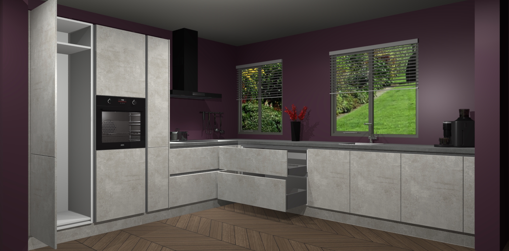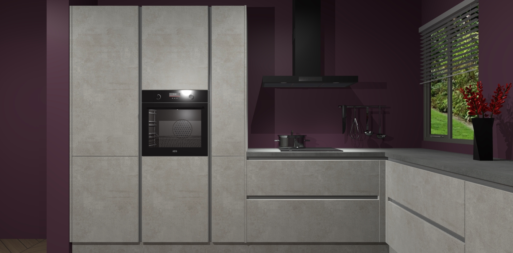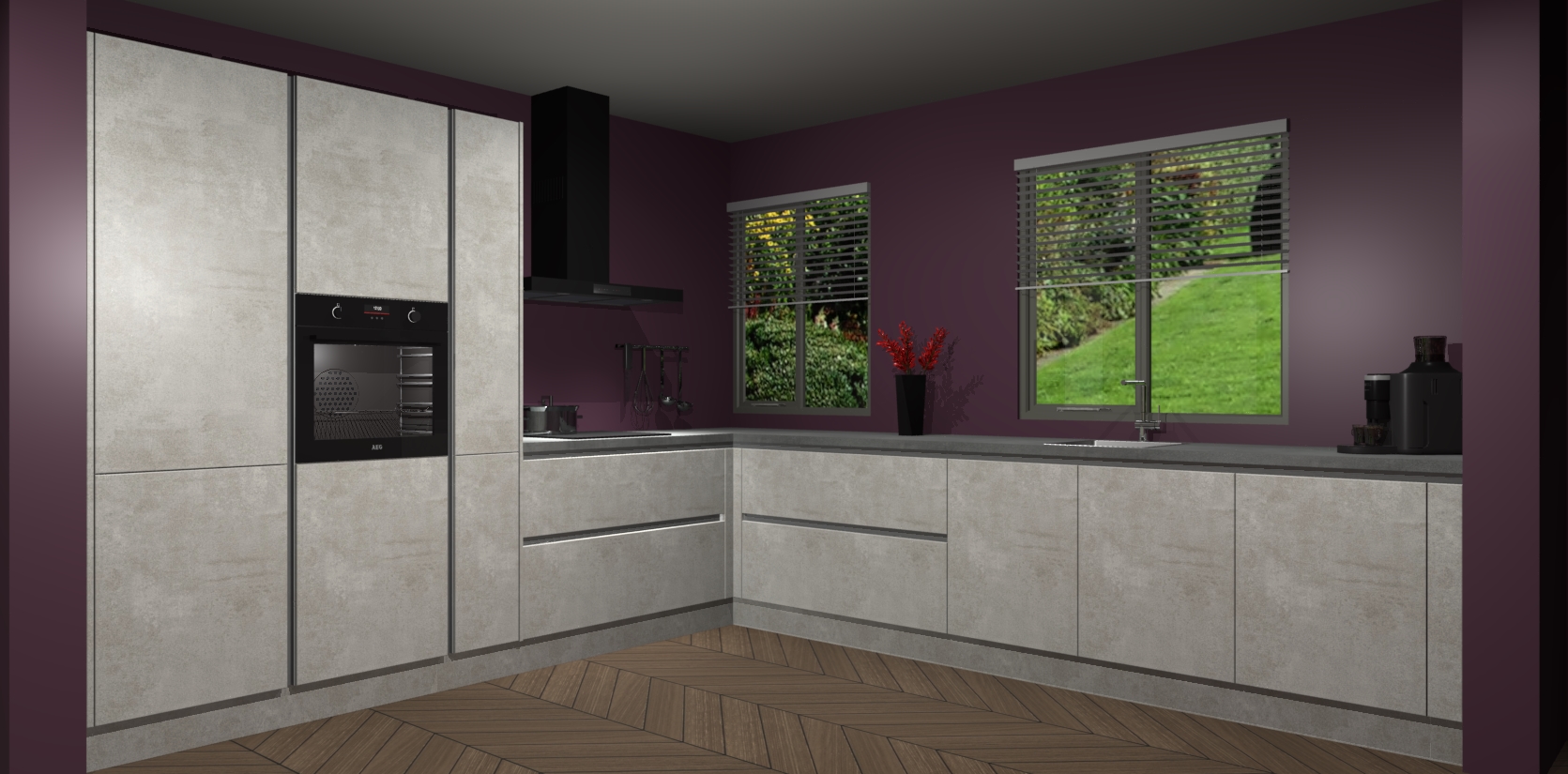 Welkom bij de Beton Opaal keuken Palermo. Deze prachtige keuken zal de komende jaren het middelpunt van de belangstelling in uw huis zijn. Uitgerust met vijf inbouwapparaten komt u nooit kookgereedschap tekort. Bovendien geeft de warme houtlook elke ruimte een uitnodigende en tijdloze uitstraling.