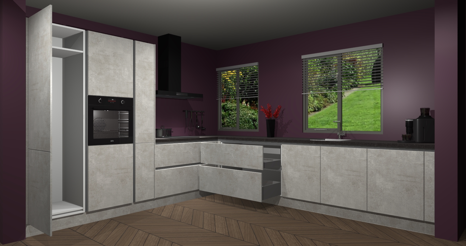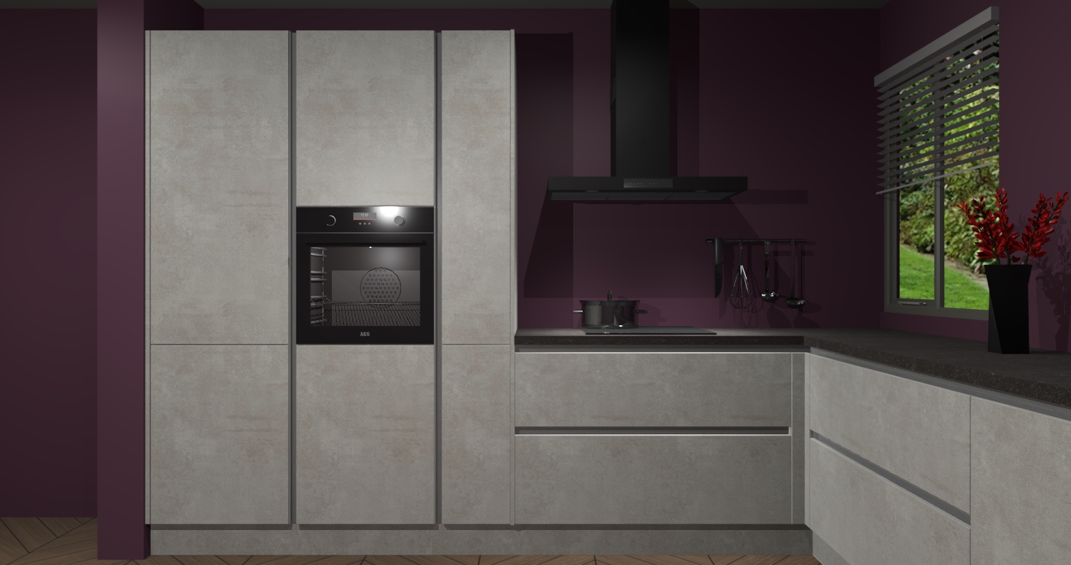 Welkom bij de Beton Opaal keuken Palermo. Deze prachtige keuken zal de komende jaren het middelpunt van de belangstelling in uw huis zijn. Uitgerust met vijf inbouwapparaten komt u nooit kookgereedschap tekort. Bovendien geeft de warme houtlook elke ruimte een uitnodigende en tijdloze uitstraling.
