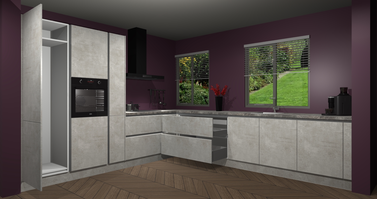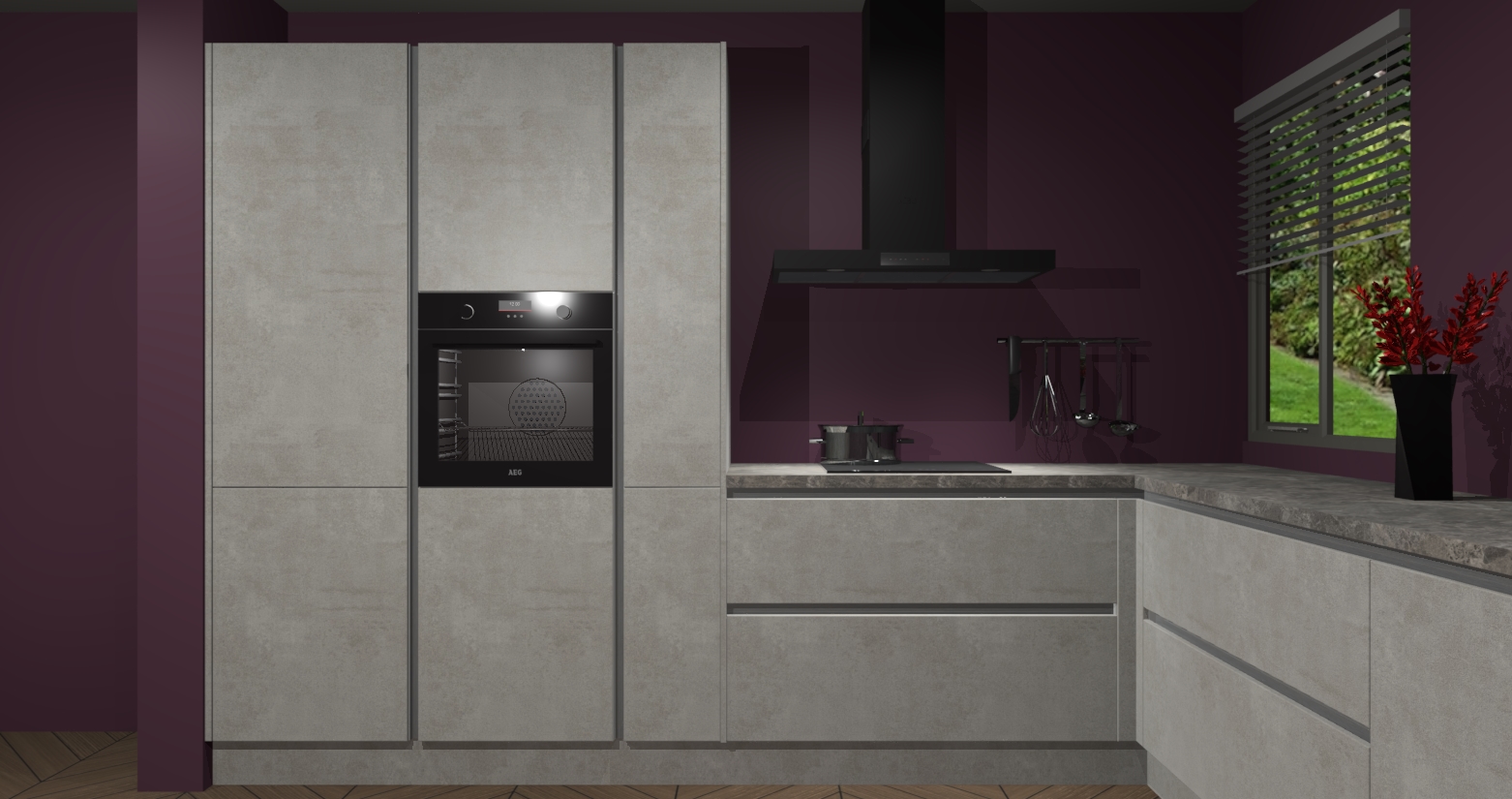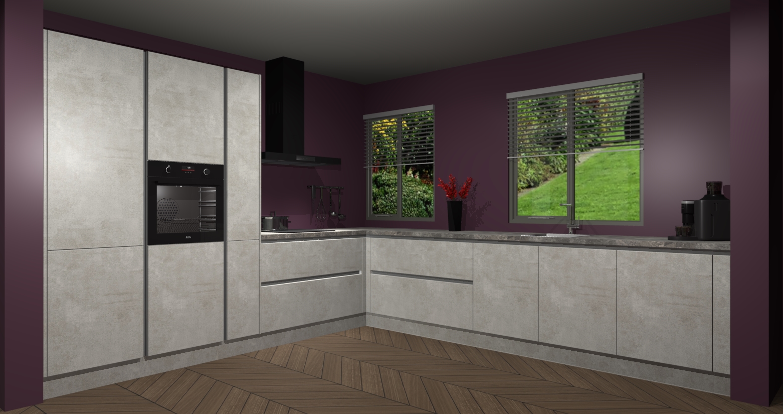 Welkom bij de Beton Opaal keuken Palermo. Deze prachtige keuken zal de komende jaren het middelpunt van de belangstelling in uw huis zijn. Uitgerust met vijf inbouwapparaten komt u nooit kookgereedschap tekort. Bovendien geeft de warme houtlook elke ruimte een uitnodigende en tijdloze uitstraling.