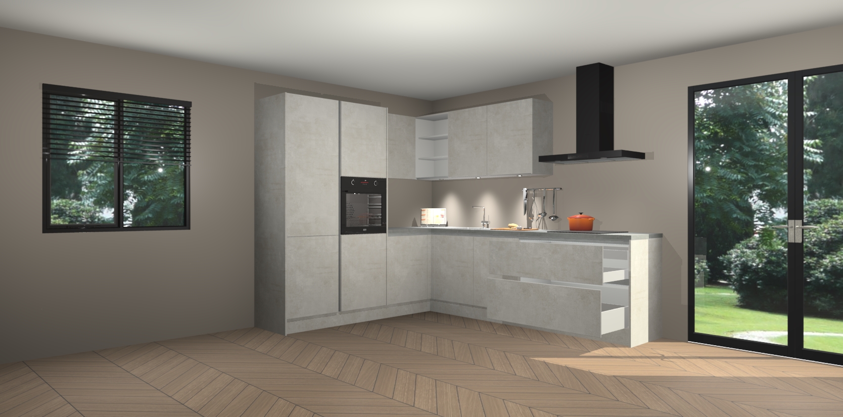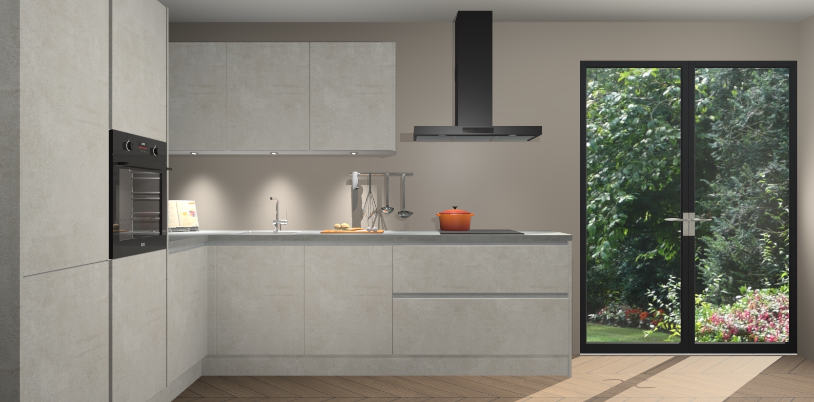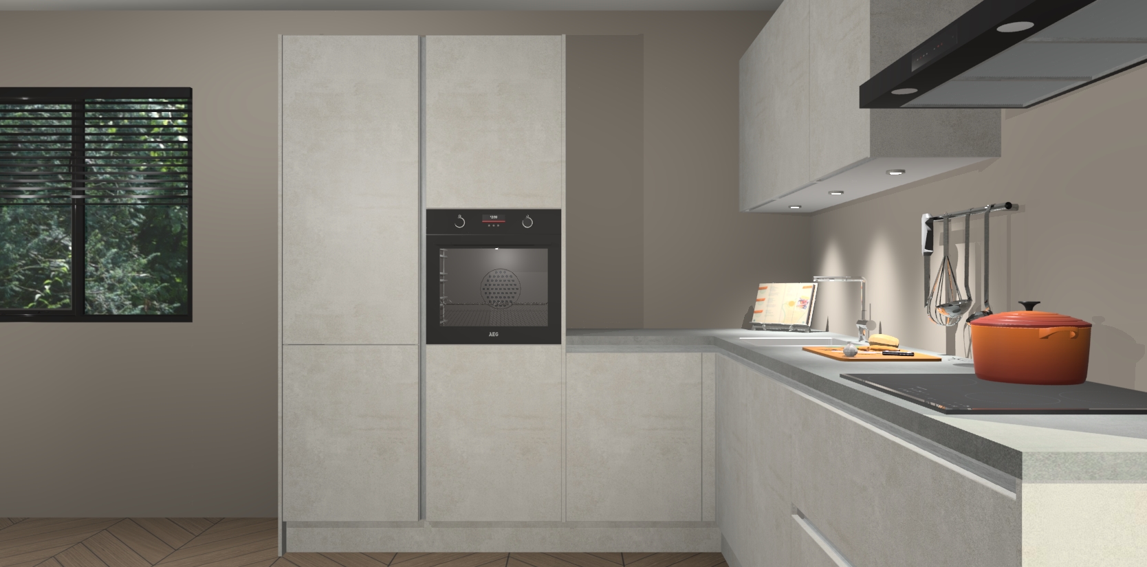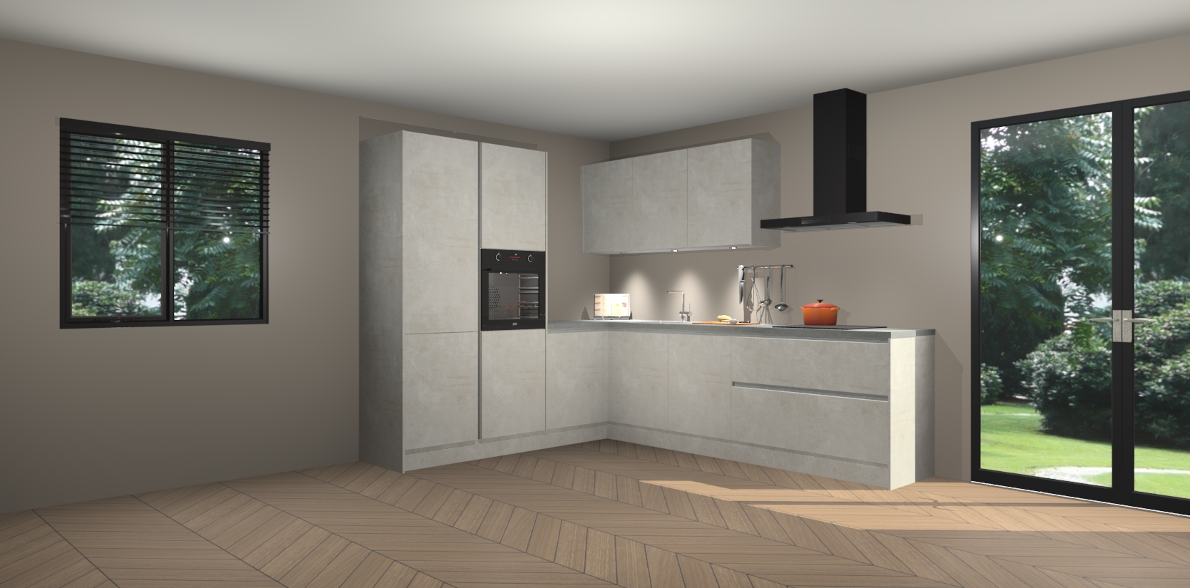 Maak kennis met de beton opaal greeploze keuken Parla - de perfecte aanvulling voor uw moderne keuken! Ervaar tijdloos design, elegantie en een chique uitstraling met onze zwarte handgrepen, soft-close deuren en veel opbergruimte. Dit alles wordt aangeboden tegen een vaste lage prijs voor ongeëvenaarde Duitse keukenkwaliteit!