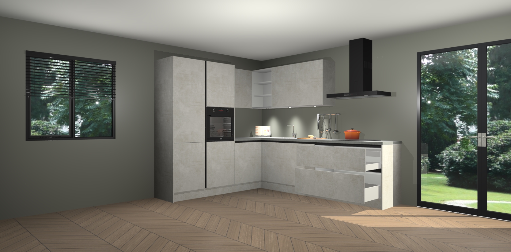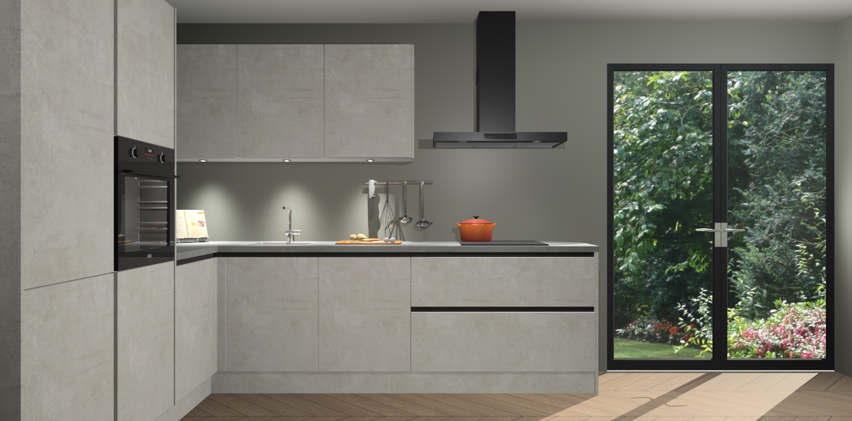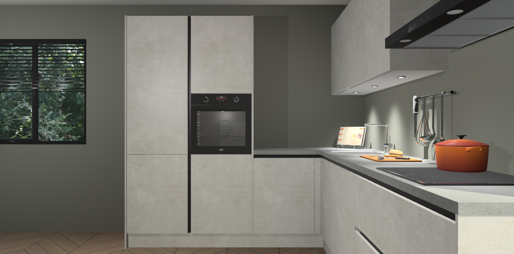 Maak kennis met de beton opaal greeploze keuken Parla - de perfecte aanvulling voor uw moderne keuken! Ervaar tijdloos design, elegantie en een chique uitstraling met onze zwarte handgrepen, soft-close deuren en veel opbergruimte. Dit alles wordt aangeboden tegen een vaste lage prijs voor ongeëvenaarde Duitse keukenkwaliteit!