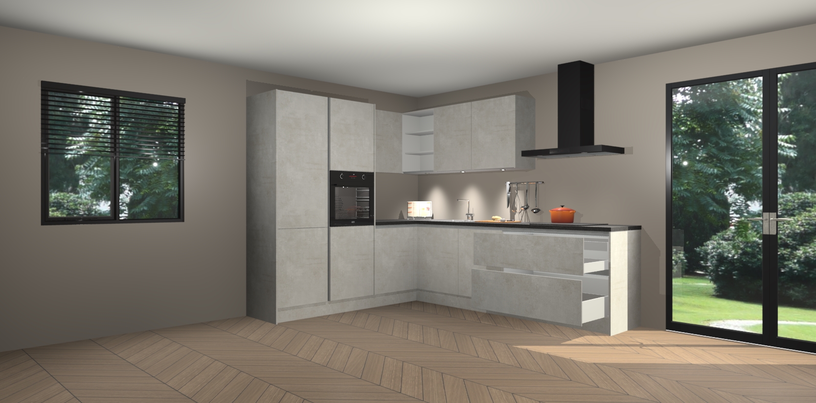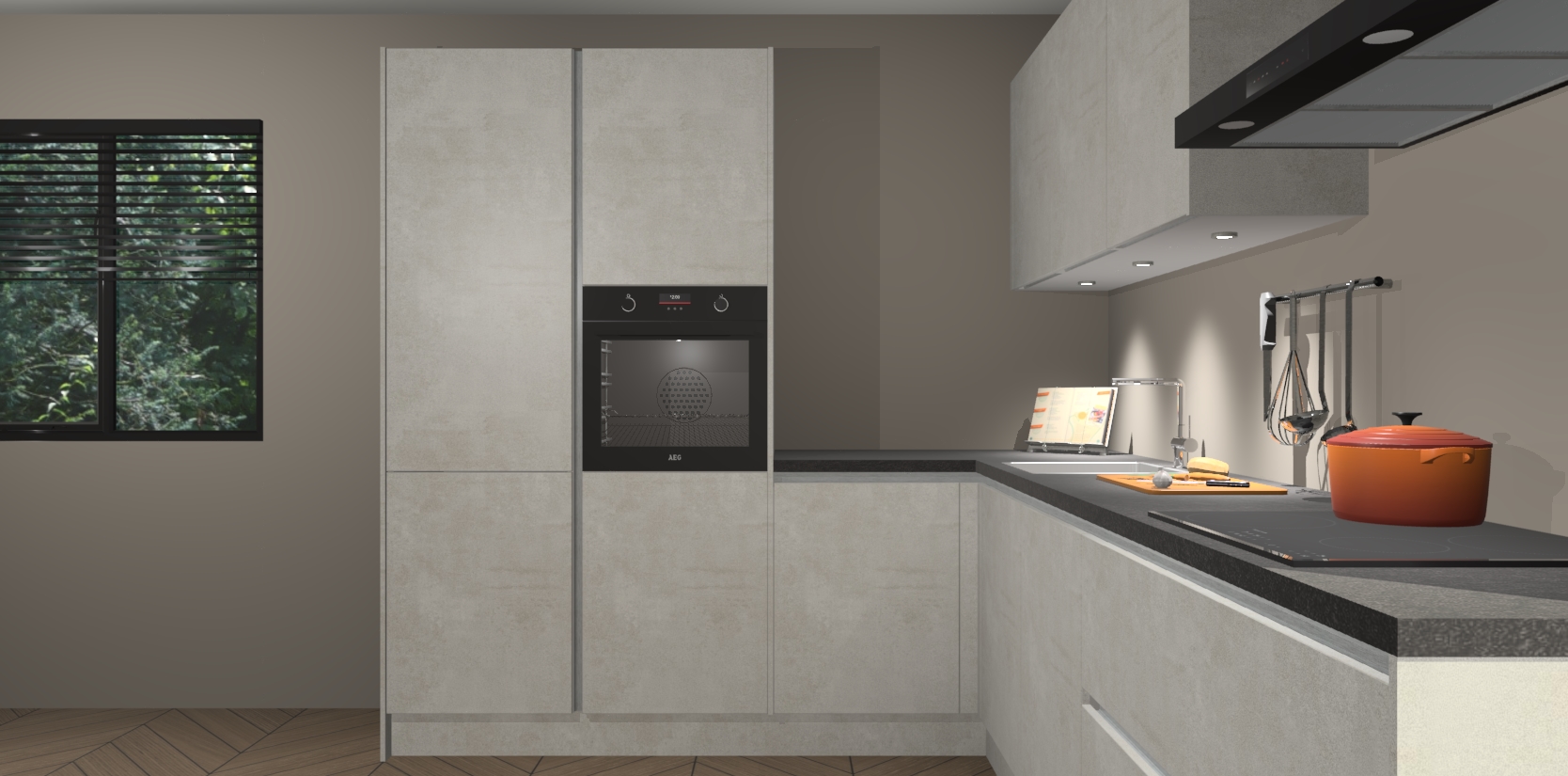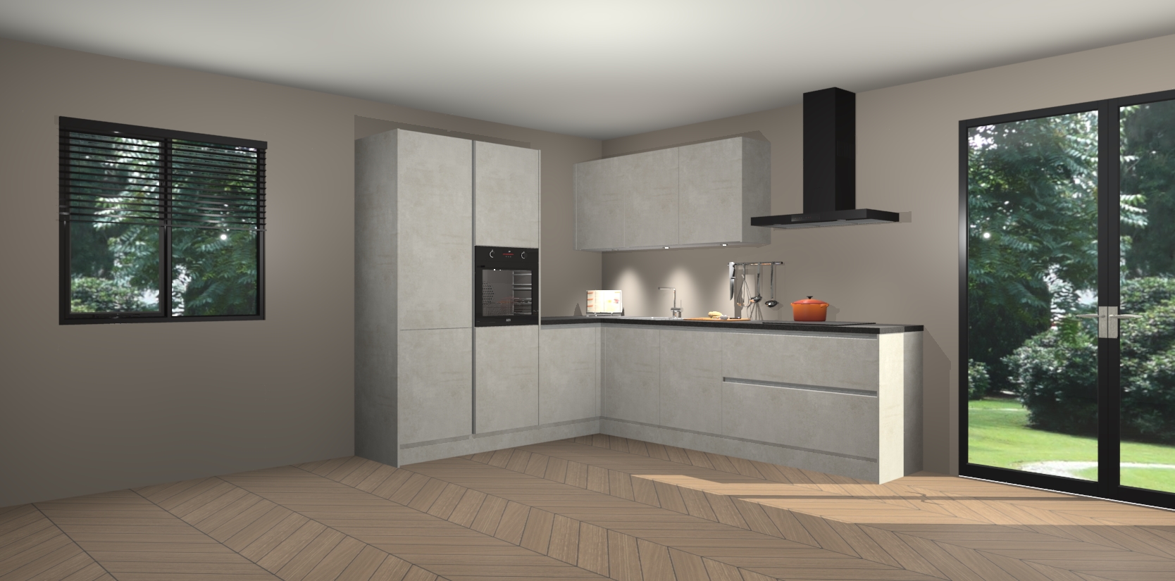 Maak kennis met de beton opaal greeploze keuken Parla - de perfecte aanvulling voor uw moderne keuken! Ervaar tijdloos design, elegantie en een chique uitstraling met onze zwarte handgrepen, soft-close deuren en veel opbergruimte. Dit alles wordt aangeboden tegen een vaste lage prijs voor ongeëvenaarde Duitse keukenkwaliteit!