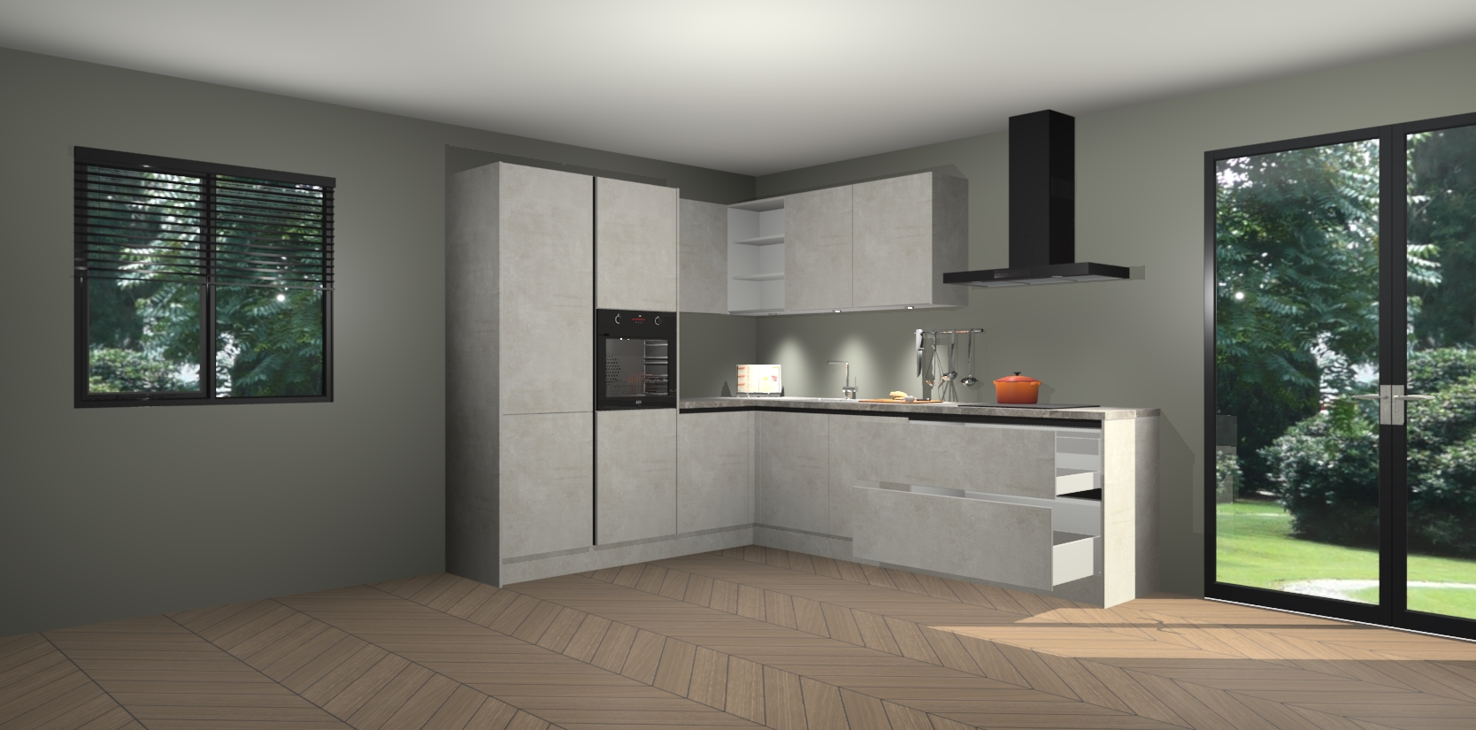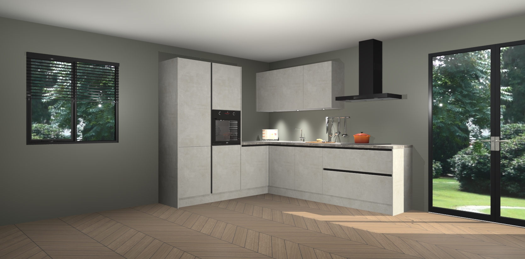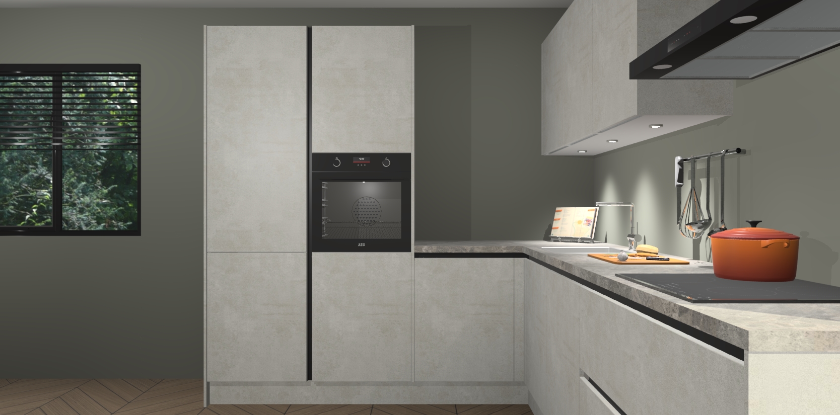 Maak kennis met de beton opaal greeploze keuken Parla - de perfecte aanvulling voor uw moderne keuken! Ervaar tijdloos design, elegantie en een chique uitstraling met onze zwarte handgrepen, soft-close deuren en veel opbergruimte. Dit alles wordt aangeboden tegen een vaste lage prijs voor ongeëvenaarde Duitse keukenkwaliteit!