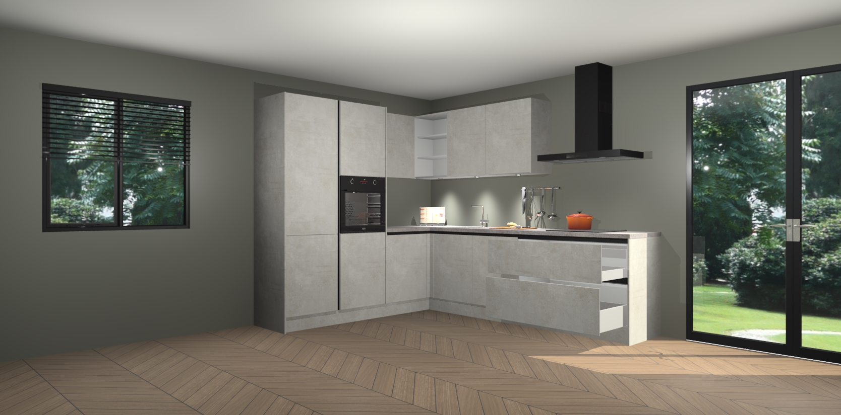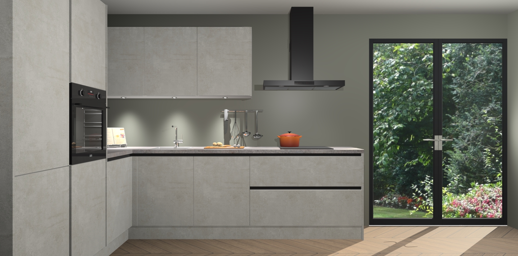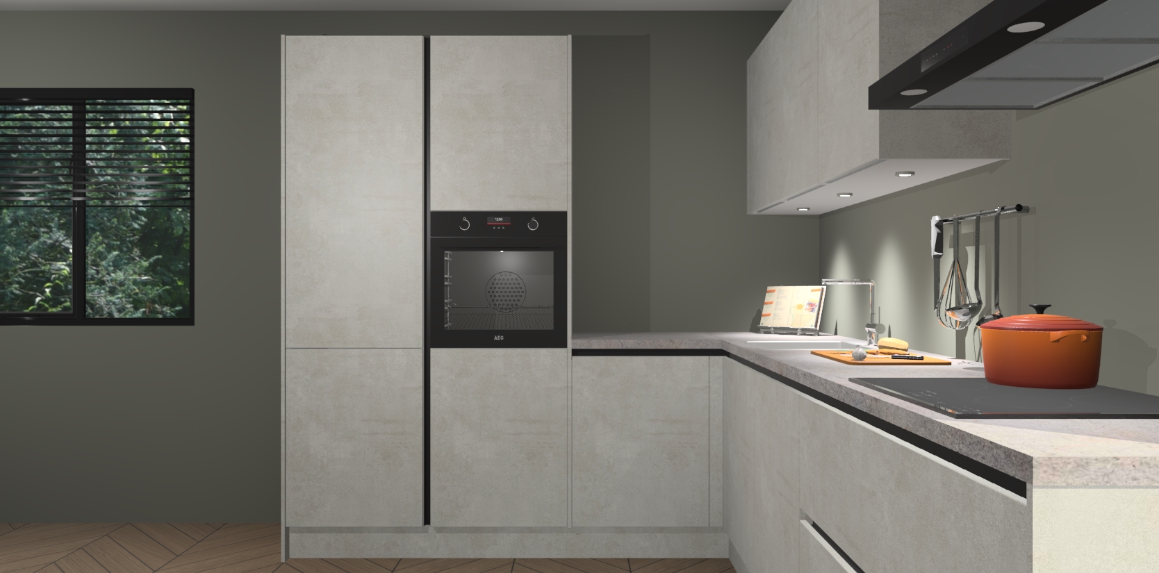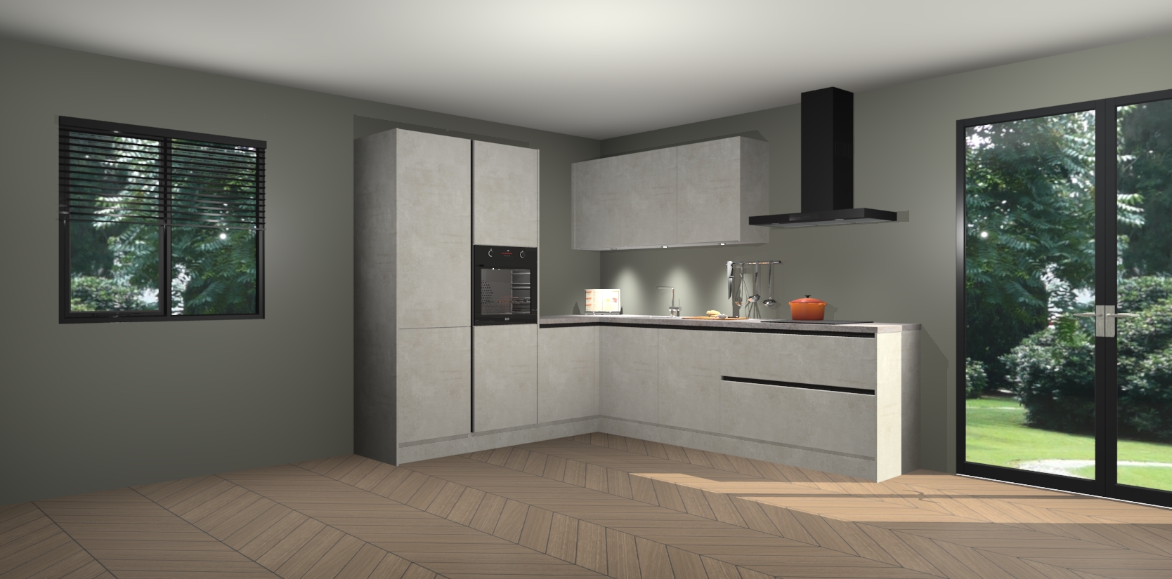 Maak kennis met de beton opaal greeploze keuken Parla - de perfecte aanvulling voor uw moderne keuken! Ervaar tijdloos design, elegantie en een chique uitstraling met onze zwarte handgrepen, soft-close deuren en veel opbergruimte. Dit alles wordt aangeboden tegen een vaste lage prijs voor ongeëvenaarde Duitse keukenkwaliteit!