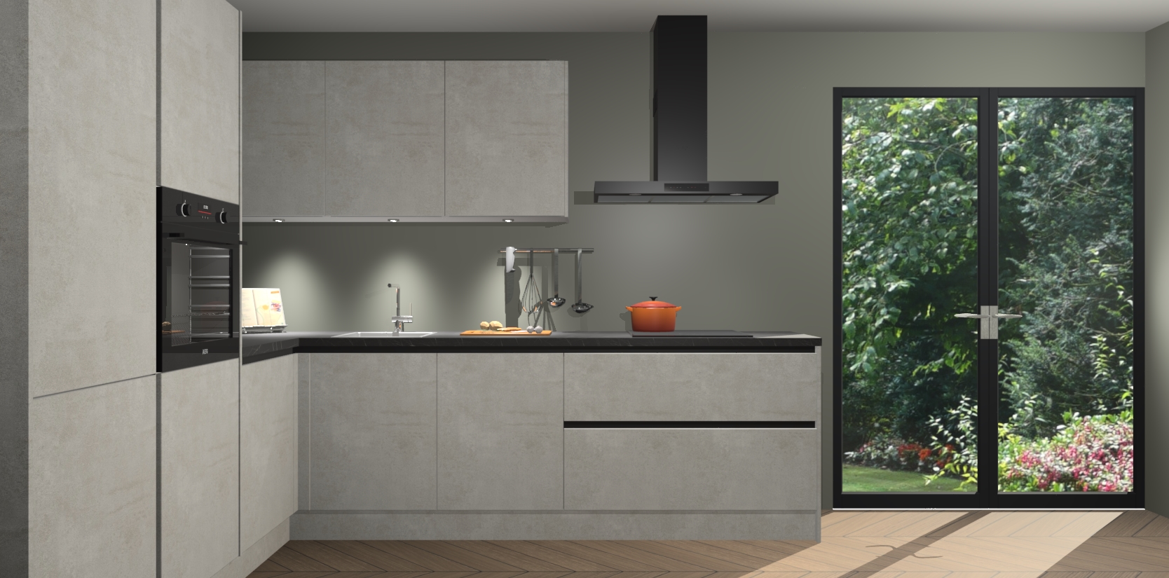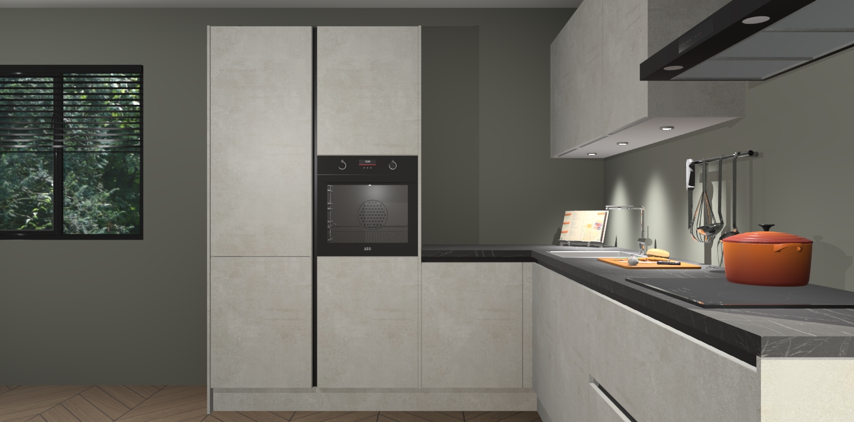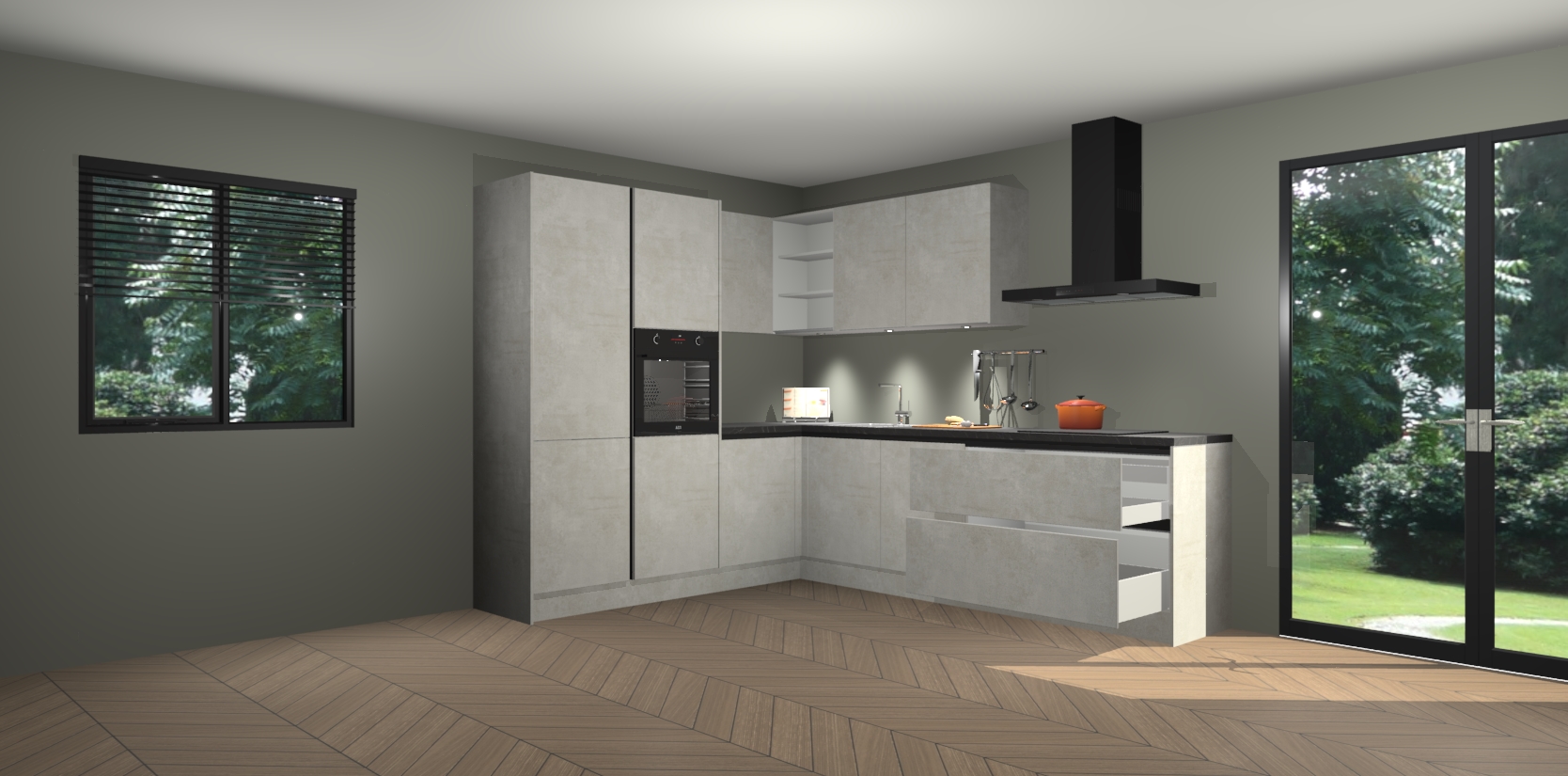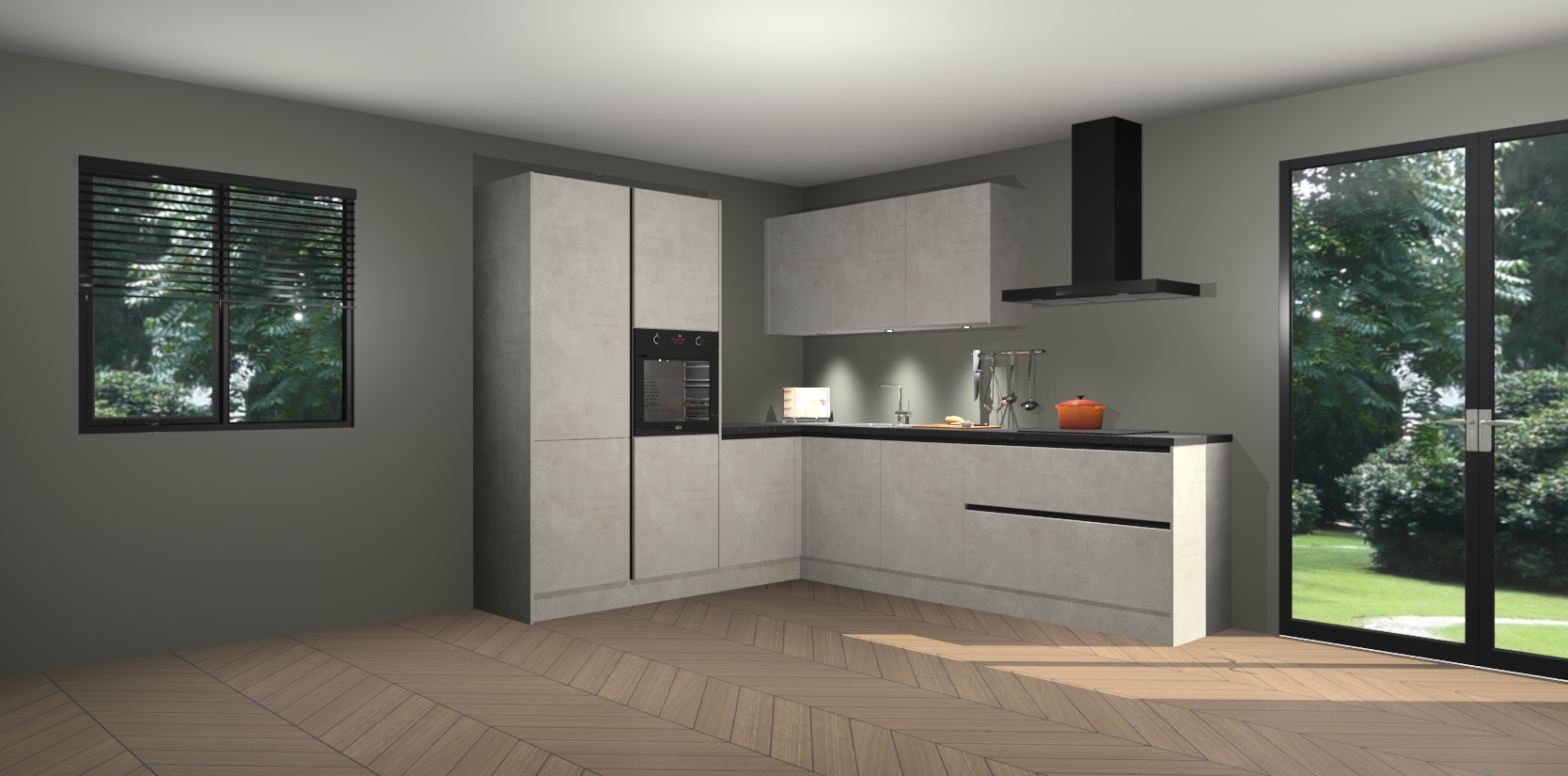 Maak kennis met de beton opaal greeploze keuken Parla - de perfecte aanvulling voor uw moderne keuken! Ervaar tijdloos design, elegantie en een chique uitstraling met onze zwarte handgrepen, soft-close deuren en veel opbergruimte. Dit alles wordt aangeboden tegen een vaste lage prijs voor ongeëvenaarde Duitse keukenkwaliteit!