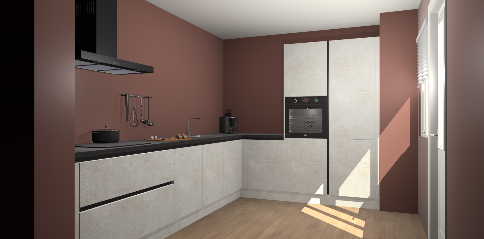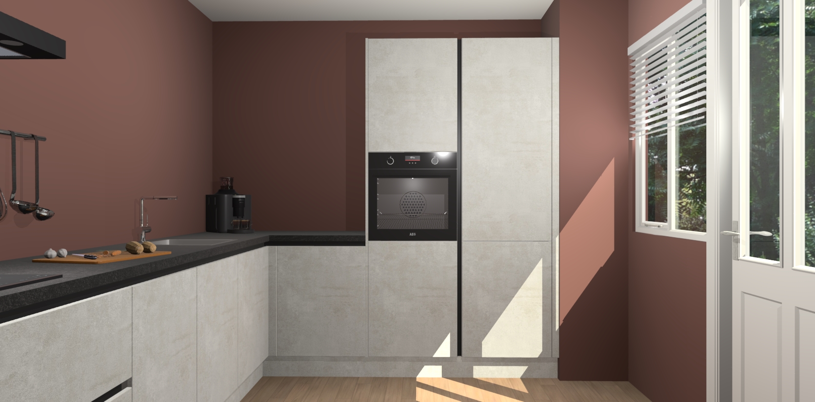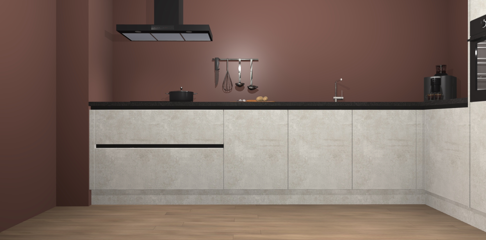 Welkom bij de Beton Opaal greeploze keuken Portland. Deze prachtige keuken zal de komende jaren het middelpunt van de belangstelling in uw huis zijn. Uitgerust met vijf inbouwapparaten komt u nooit kookgereedschap tekort. Bovendien geeft de warme houtlook elke ruimte een uitnodigende en tijdloze uitstraling.