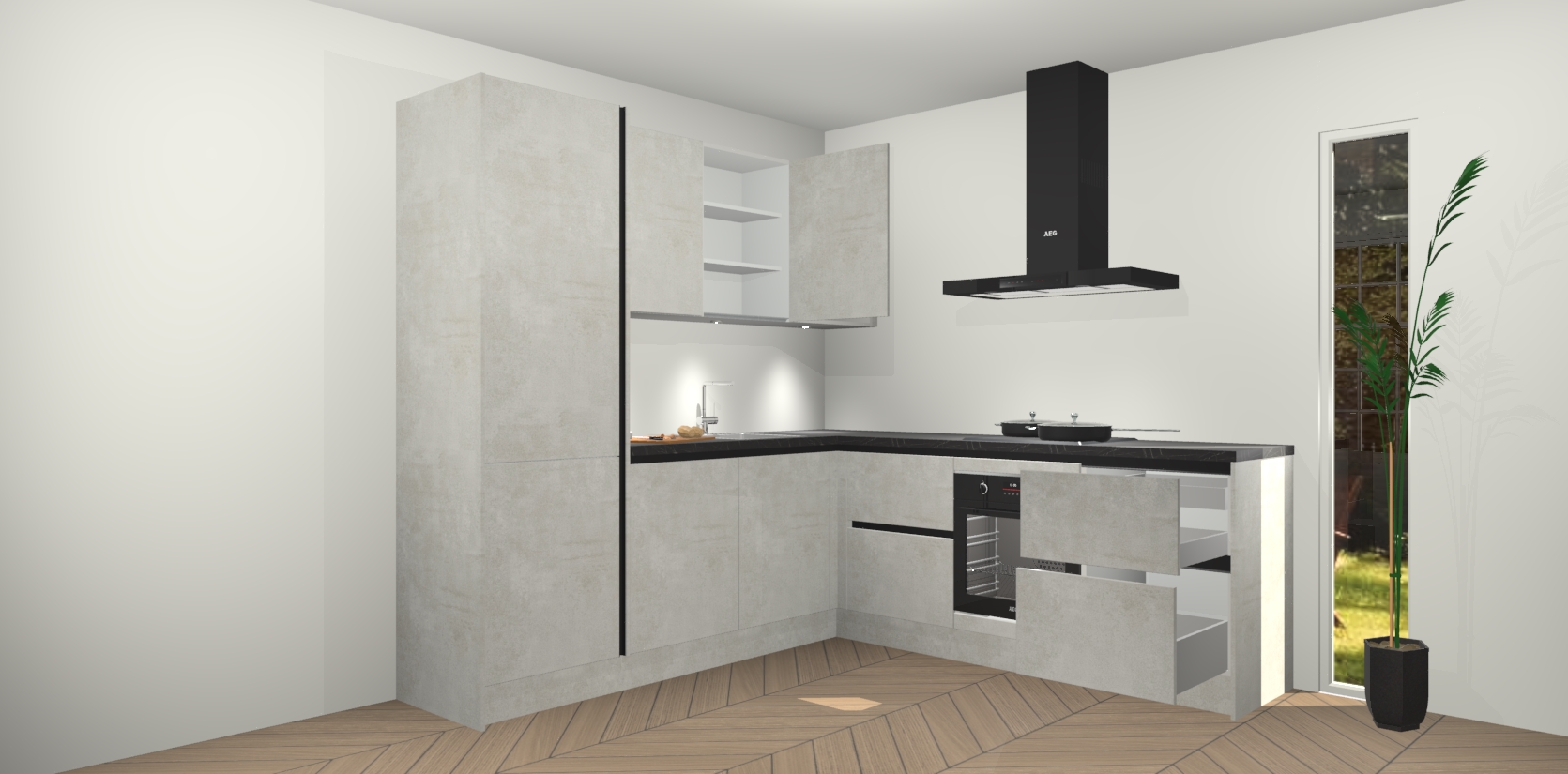Inclusief plinten, stelpoten en werkblad