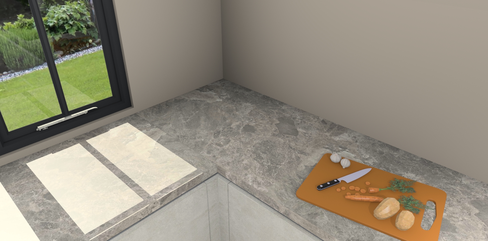 - Bij een hoekwerkblad zijn de hoeken in gevreesd en op maat gemaakt