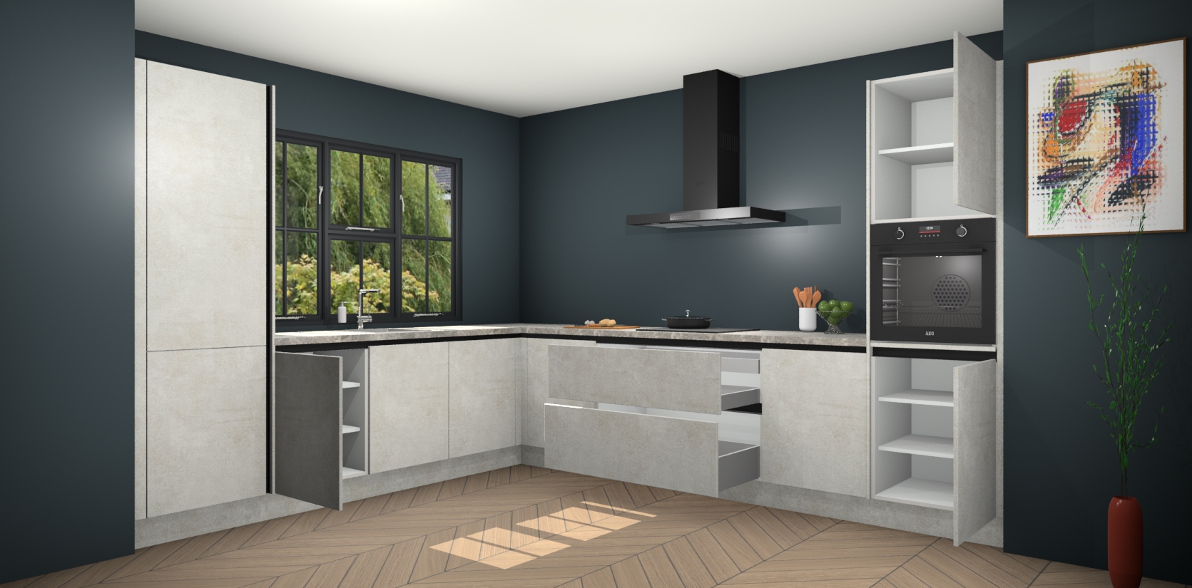 In deze box zijn alle kleuren verzameld van de deuren en werkbladen. Vraag de gratis kleurenbox aan en kijk thuis rustig verder!