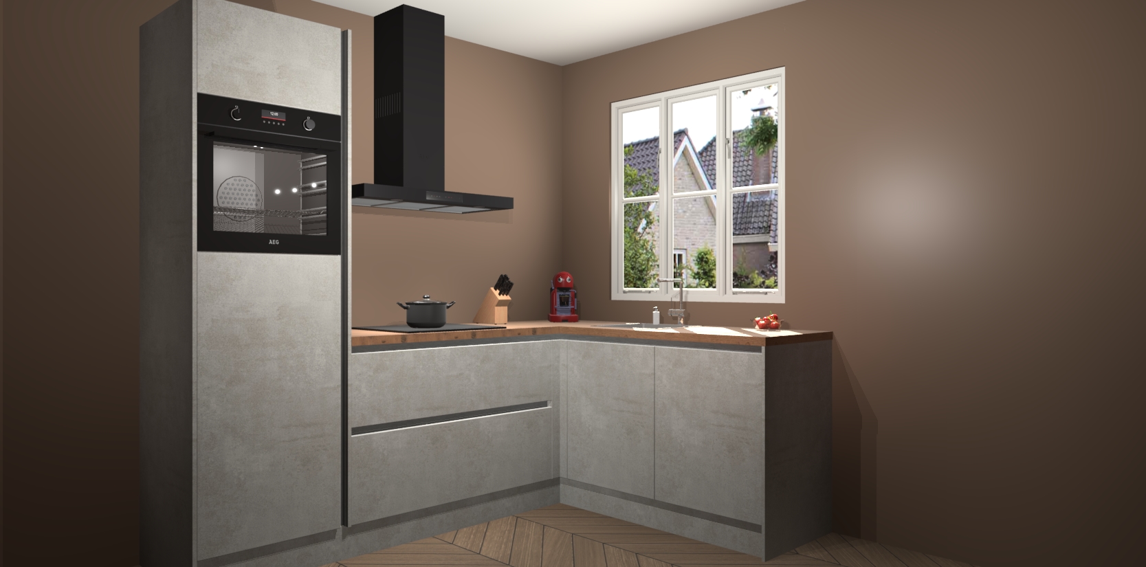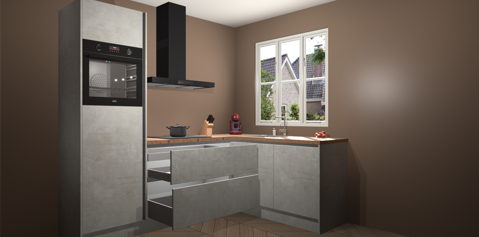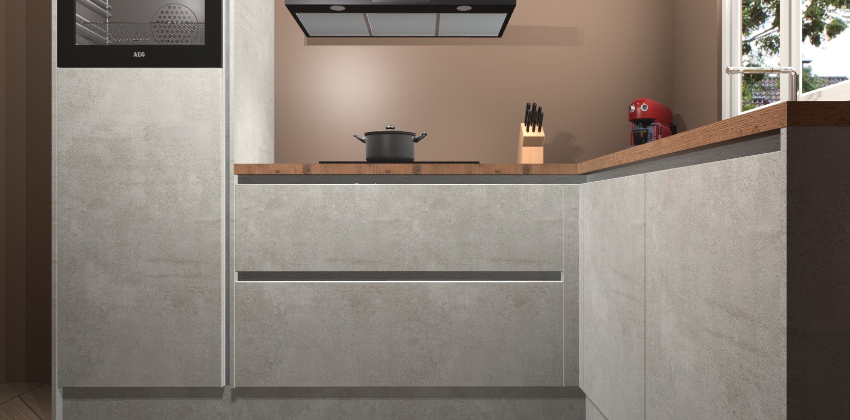 Dit model biedt u voldoende opbergruimte en vijf ingebouwde apparaten: een oven, inductiekookplaat, afzuigkap, vaatwasser en koelkast. Deze apparaten kunnen gemakkelijk worden geüpgrade naar AEG nadat u besteld heeft. De verschillende laden en kastjes bevatten softclose-deuren waardoor ze gezellig dichtvallen met een geruststellend helemaal geruisloos geluid. En dat is nog niet alles! We garanderen ook dat de prijs altijd laag blijft - dus haal nu uw Beton opaal greeploze keuken Victoria terwijl het kan.
