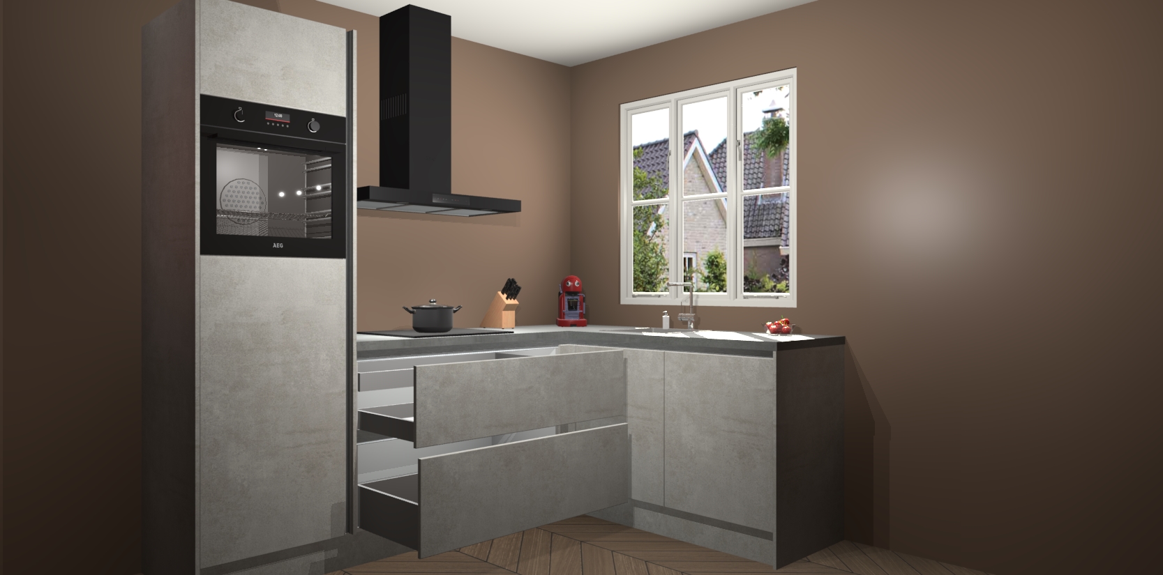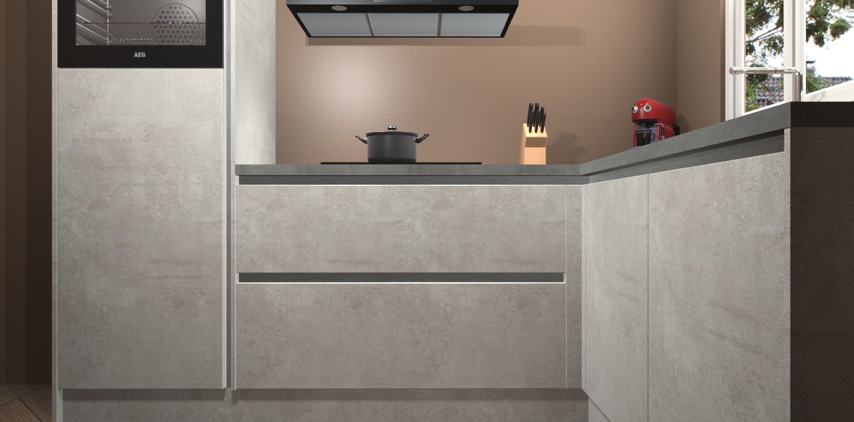Bestellen was nog nooit zo makkelijk en we leveren met slechts 7 weken; zodra de keuken arriveert staan de kasten voor gemonteerd klaar om er alles aan te doen dat u hem gemakkelijk zelf kunt installeren! Eén ding is zeker: met de Beton opaal greeploze keuken Victoria slaagt u erin modischer, modernere keukens uit te rusten die tientallen jaren meegaan! Haal snel uw Beton opaal greeploze keuken Victoria - of u nu net begint of al 'levenservaring' hebt in de keukendroomloopbaan - want dit topmodel van onze collectie wilt u absoluut niet missen.
