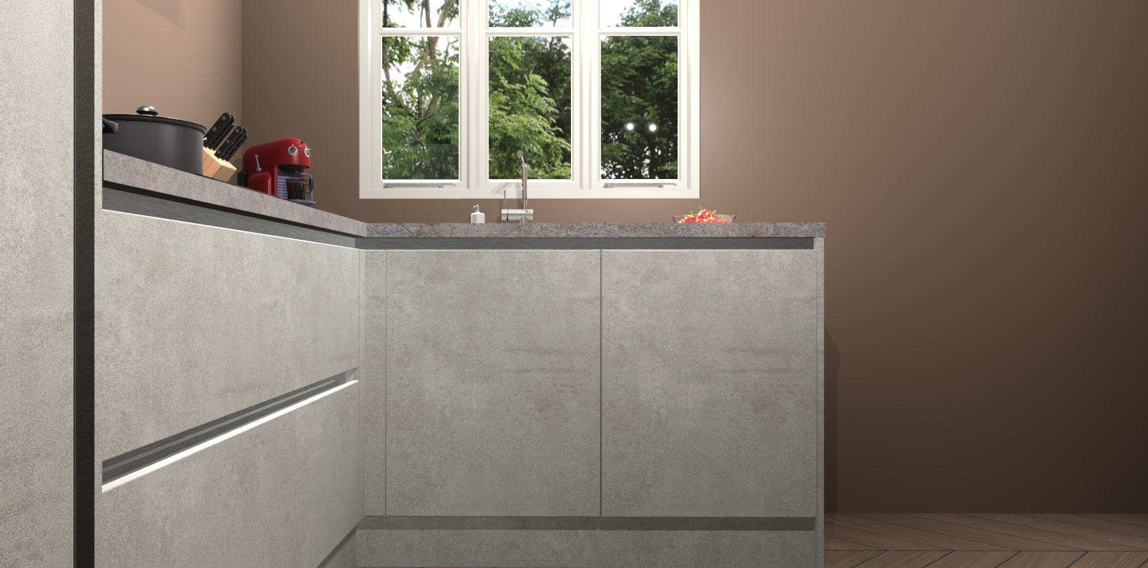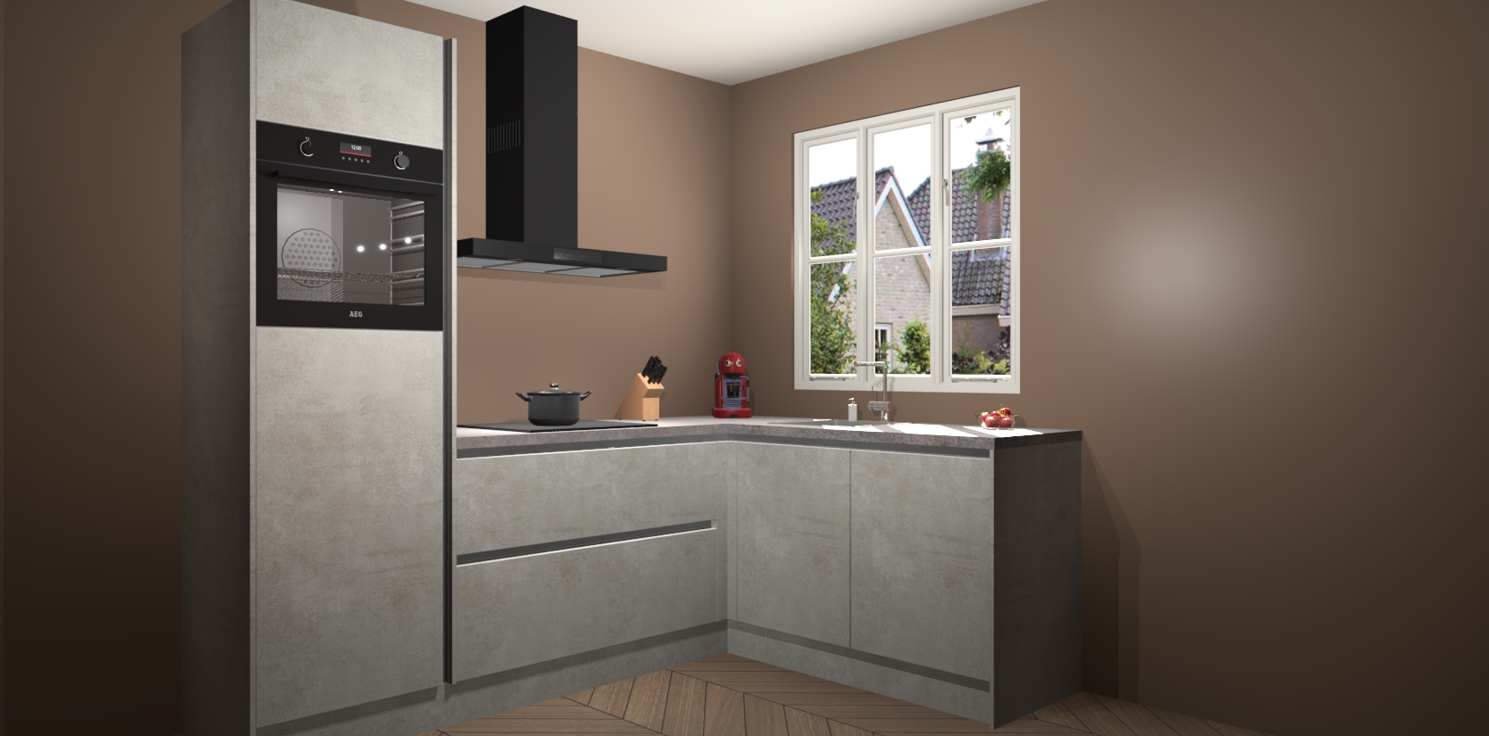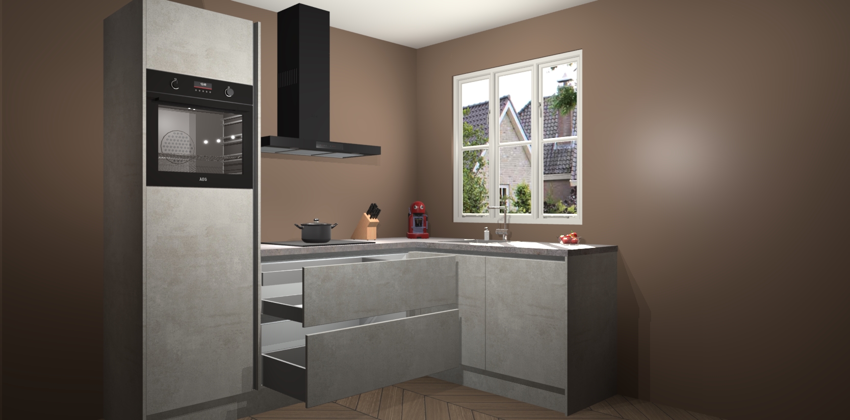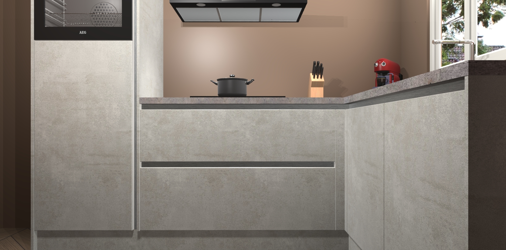 Dit model biedt u voldoende opbergruimte en vijf ingebouwde apparaten: een oven, inductiekookplaat, afzuigkap, vaatwasser en koelkast. Deze apparaten kunnen gemakkelijk worden geüpgrade naar AEG nadat u besteld heeft. De verschillende laden en kastjes bevatten softclose-deuren waardoor ze gezellig dichtvallen met een geruststellend helemaal geruisloos geluid. En dat is nog niet alles! We garanderen ook dat de prijs altijd laag blijft - dus haal nu uw Beton opaal greeploze keuken Victoria terwijl het kan.