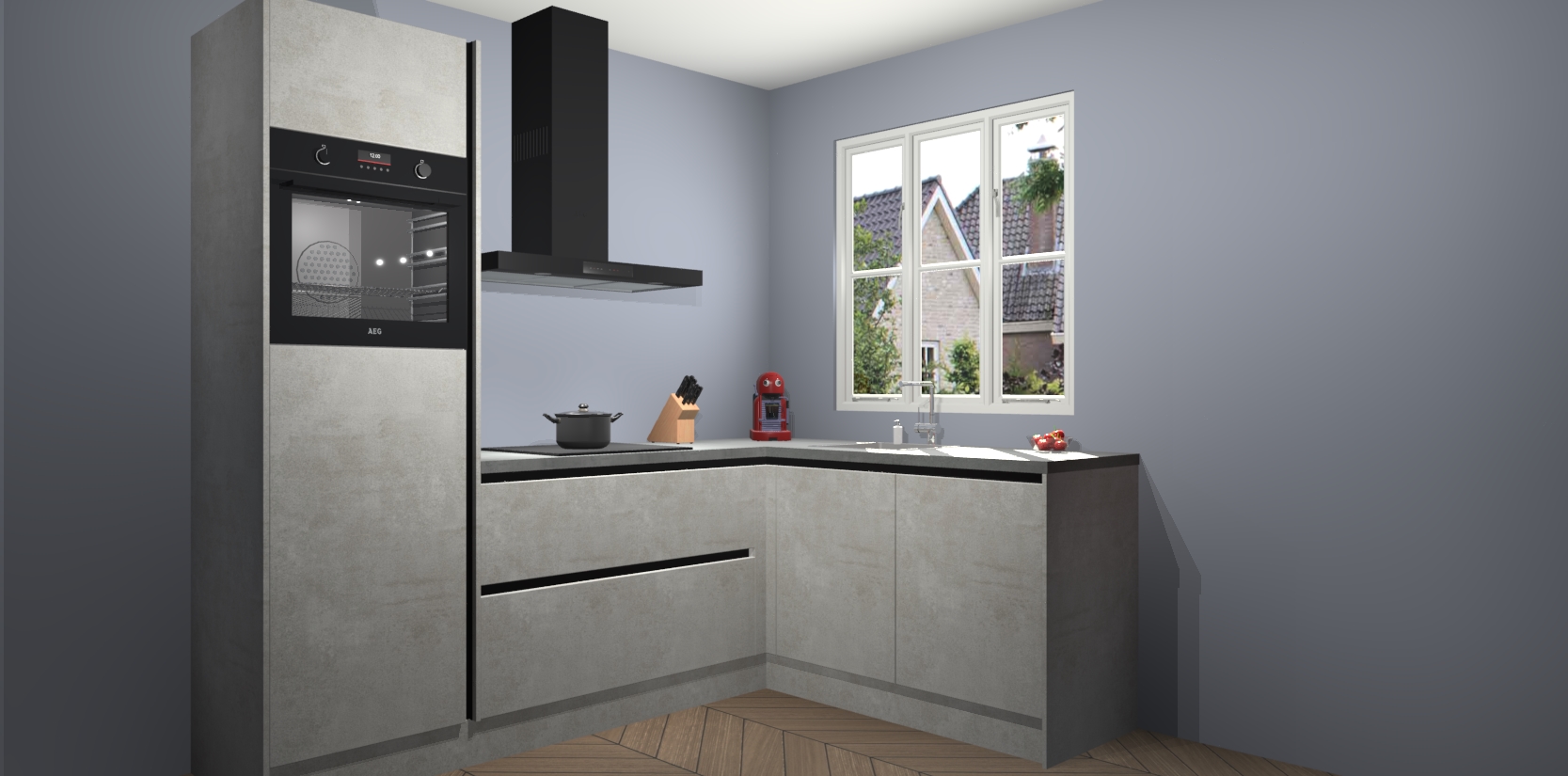 Dit model biedt u voldoende opbergruimte en vijf ingebouwde apparaten: een oven, inductiekookplaat, afzuigkap, vaatwasser en koelkast. Deze apparaten kunnen gemakkelijk worden geüpgrade naar AEG nadat u besteld heeft. De verschillende laden en kastjes bevatten softclose-deuren waardoor ze gezellig dichtvallen met een geruststellend helemaal geruisloos geluid. En dat is nog niet alles! We garanderen ook dat de prijs altijd laag blijft - dus haal nu uw Beton opaal greeploze keuken Victoria terwijl het kan.