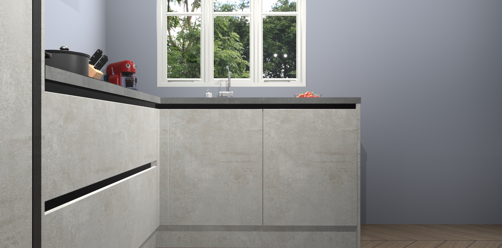 Bestellen was nog nooit zo makkelijk en we leveren met slechts 7 weken; zodra de keuken arriveert staan de kasten voor gemonteerd klaar om er alles aan te doen dat u hem gemakkelijk zelf kunt installeren! Eén ding is zeker: met de Beton opaal greeploze keuken Victoria slaagt u erin modischer, modernere keukens uit te rusten die tientallen jaren meegaan! Haal snel uw Beton opaal greeploze keuken Victoria - of u nu net begint of al 'levenservaring' hebt in de keukendroomloopbaan - want dit topmodel van onze collectie wilt u absoluut niet missen.