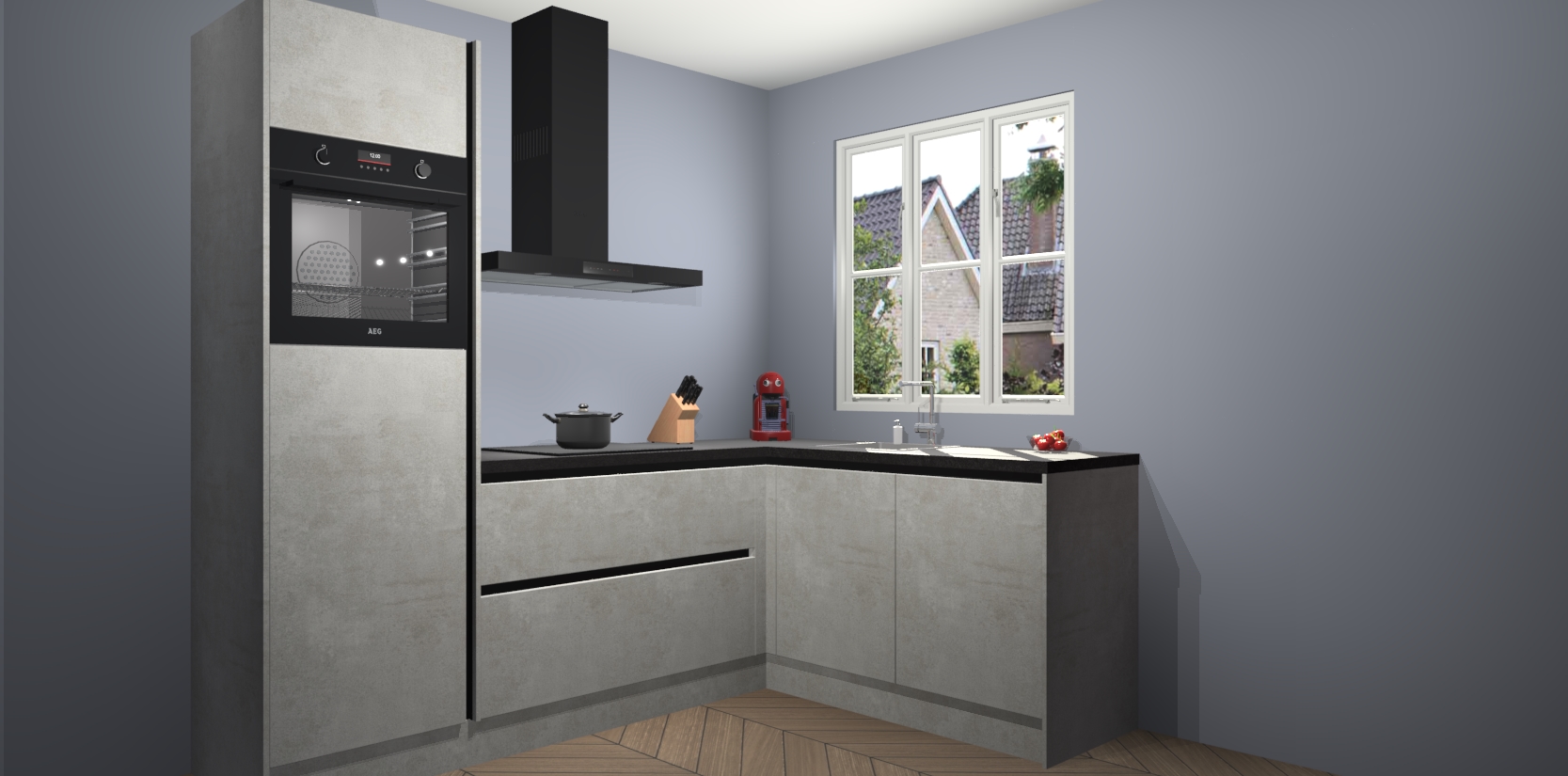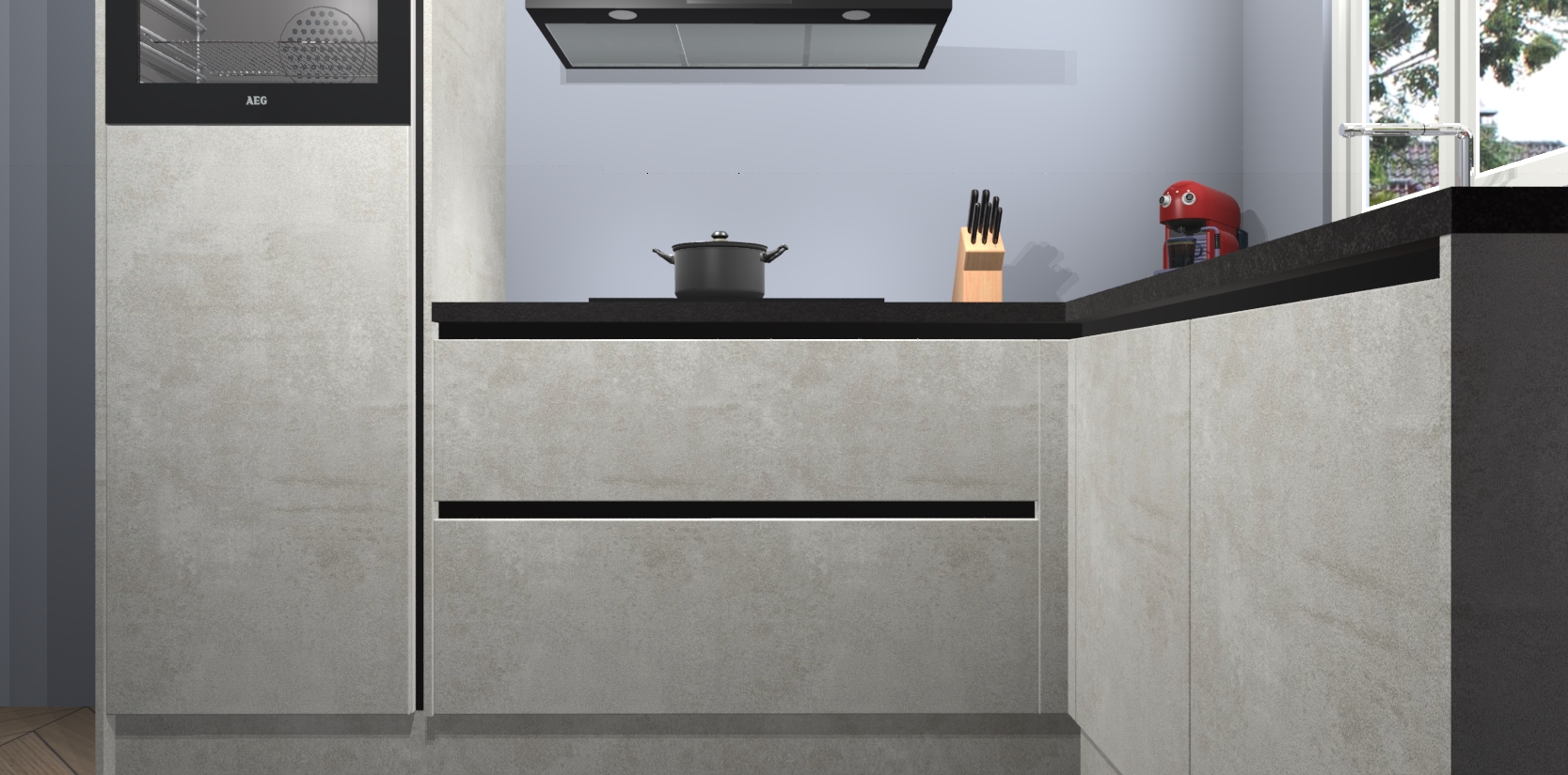 Dit model biedt u voldoende opbergruimte en vijf ingebouwde apparaten: een oven, inductiekookplaat, afzuigkap, vaatwasser en koelkast. Deze apparaten kunnen gemakkelijk worden geüpgrade naar AEG nadat u besteld heeft. De verschillende laden en kastjes bevatten softclose-deuren waardoor ze gezellig dichtvallen met een geruststellend helemaal geruisloos geluid. En dat is nog niet alles! We garanderen ook dat de prijs altijd laag blijft - dus haal nu uw Beton opaal greeploze keuken Victoria terwijl het kan.